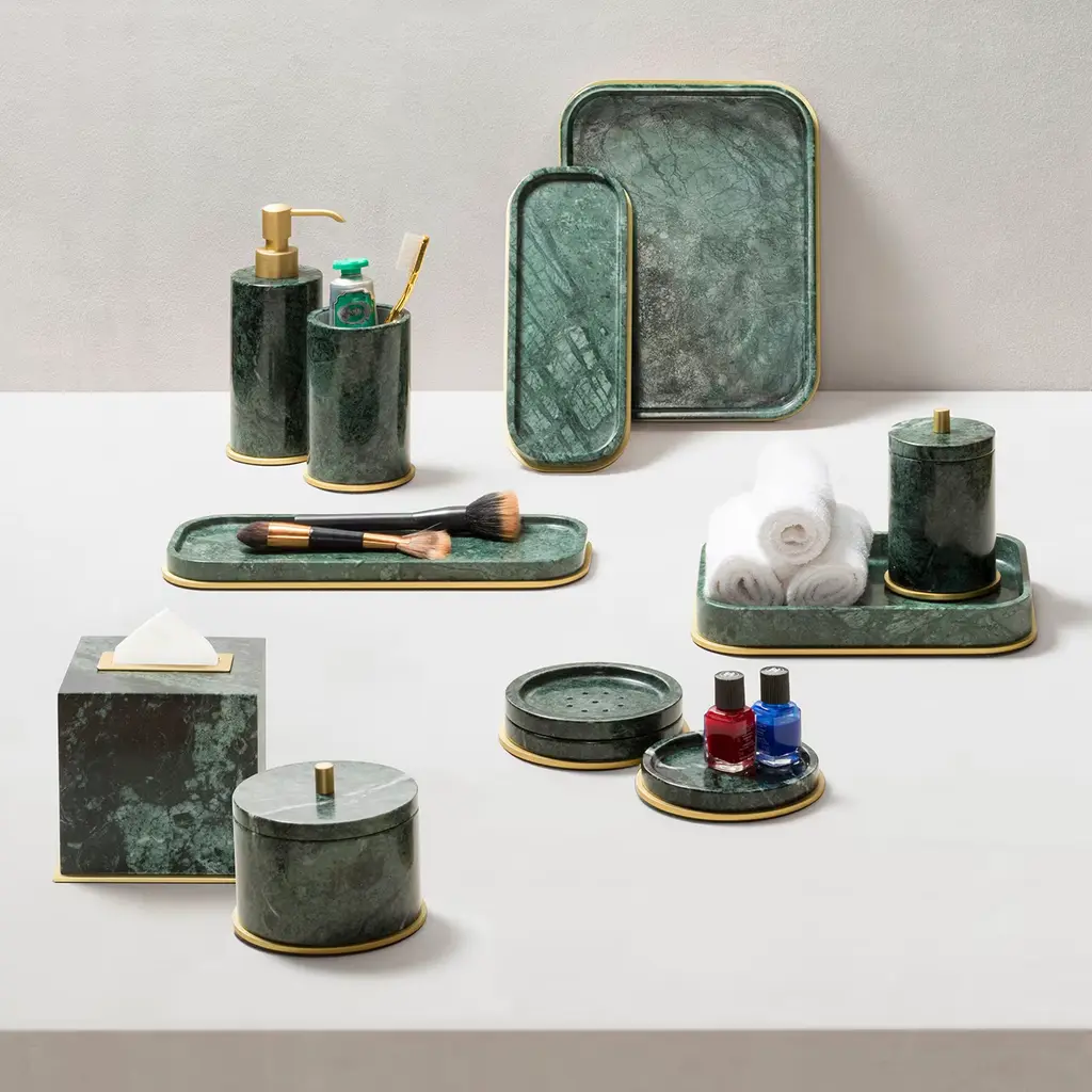 Marble structure with brass base frame and tilting lid. Provided with plexiglass removable inner structure. Non-slip waterproof rubber base underneath.