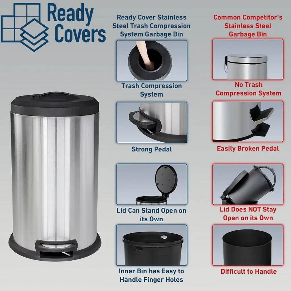 Premium Stainless Steel Trash Compression System Garbage Bin Wastebasket 40l/13g