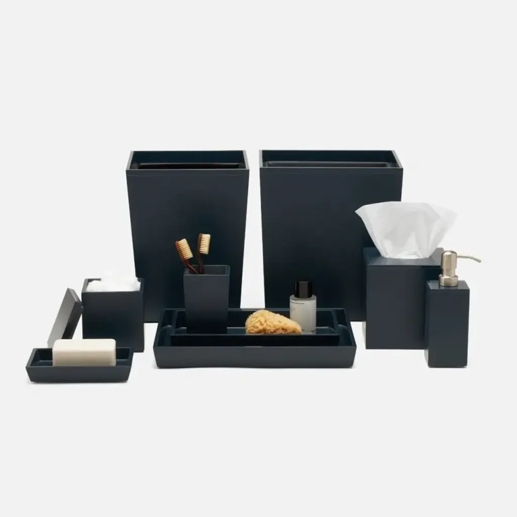 Sleek and masculine, the Quincy bath collection makes a strong impression in matte navy lacquered wood. The designers at Pigeon & Poodle believe the details of a home are just as important as the furniture. A gorgeous toothbrush holder or handcrafted canister can elevate an entire bath, the perfect frame can heighten the feel of a whole space, and a good-looking storage basket can be your look’s missing link. With thoughtful design and top-notch craftsmanship, Pigeon & Poodle create home accessories with the care and attention typically reserved for larger pieces of décor.