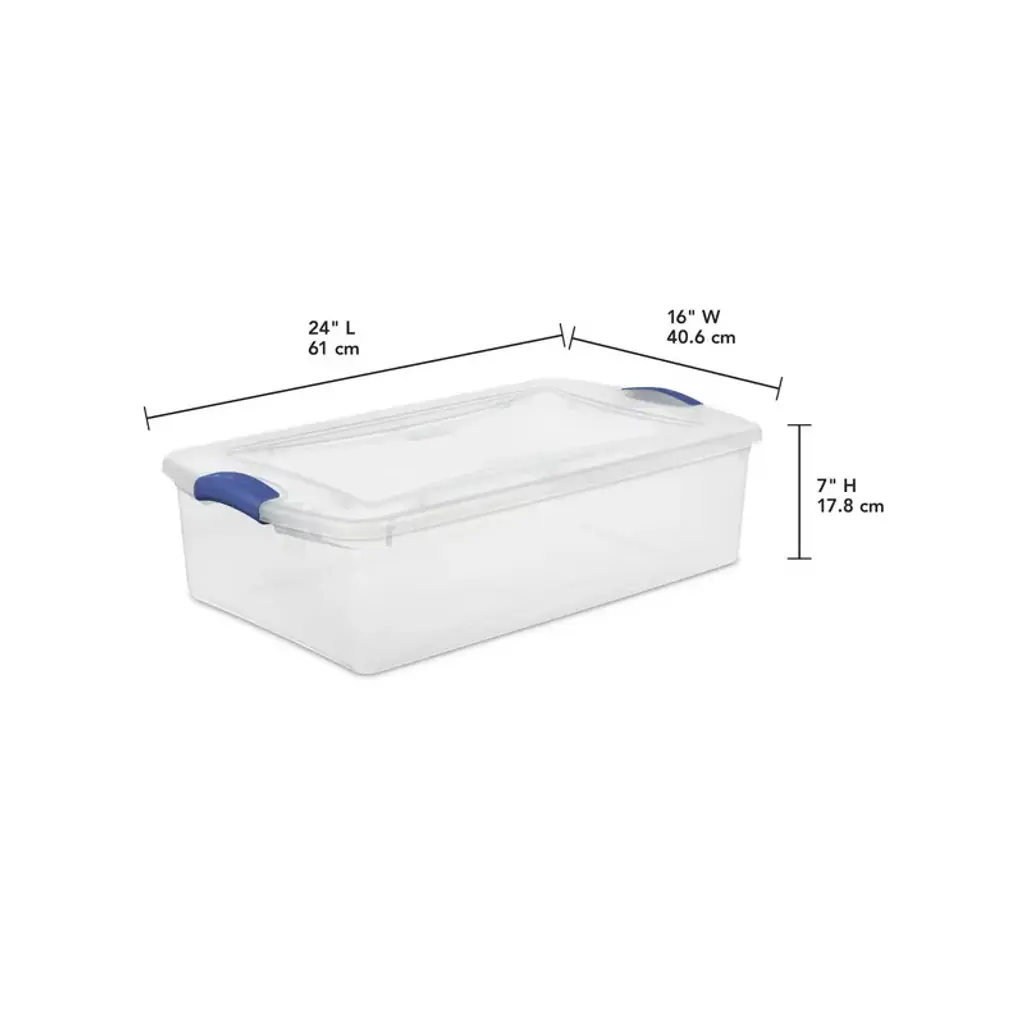 32 Quart Latch Box - Clear Plastic Storage Bin with Blue Lid & Secure Closure Tired of cluttered spaces and hard-to-find items? Meet the 32 Quart Latch Box¡ªa durable, transparent storage solution designed to keep your belongings organized, protected, and easily accessible! Perfect for home, office, or garage use, this bin combines functionality with sleek design to simplify your life.