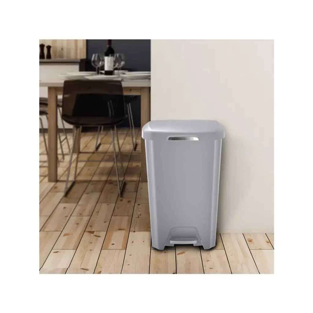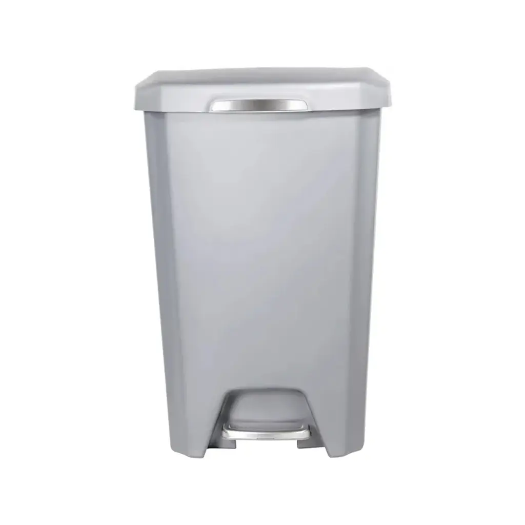 Racxily 12.1 Gallon Trash Can, Plastic Soft Close Step On Kitchen Trash Can, Gray