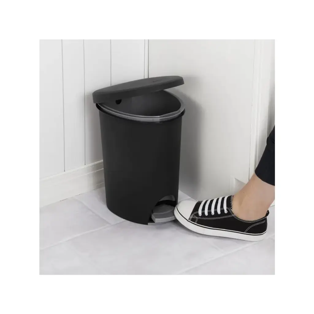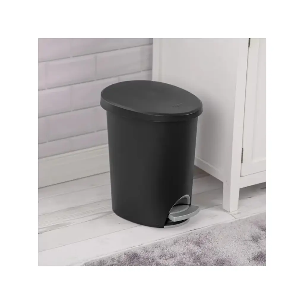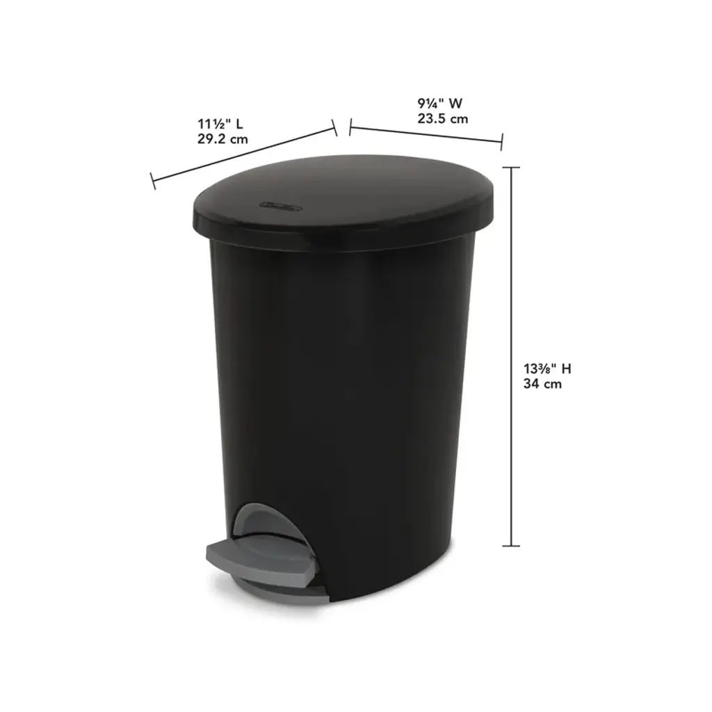 Hands-Free Access: Step-on feature provides hands-free access, making it convenient and hygienic. Odor Control: The lid helps contain odors, keeping your space fresh. Compact Design: The slim, oval design makes this 2.6 Gallon wastebasket ideal for use in narrow spaces. Versatile Use: Ideal for use in the kitchen, bathroom, bedroom, dorm room, mudroom, or basement. Easy to Clean: Made of easy-to-clean plastic with a smooth textured surface. Standard Bag Fit: Accommodates a standard plastic shopping bag or 4-gallon trash liner. Removable Liner: Includes a removable bag liner that helps keep trash bags in place. Durable Material: Made of BPA-free and phthalate-free plastic, ensuring safety and durability.