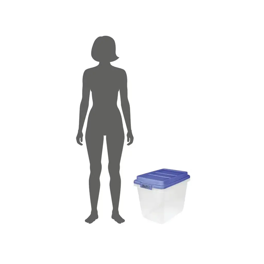 Racxily (2 Pack) 32 Qt. Clear Storage Bin With Blue Hi-rise Lid
