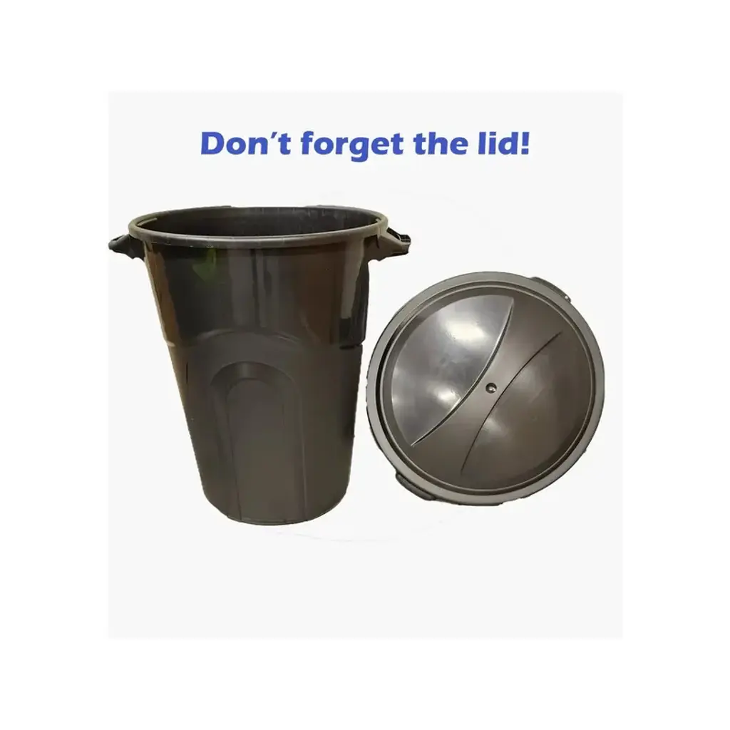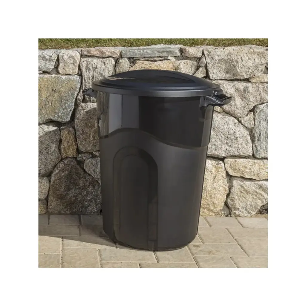 1.The 32 Gallon Heavy Duty Plastic Garbage Can with included lid is heavy duty and ideal for various waste types, accommodates a significant volume of trash. 2.This trash can is designed with sturdy pass through handles at the top and an additional hand groove on the bottom of the container, make moving this heavy duty injection molded trash can easier than ever. 3.Attach the included lid with the predrilled holes, the sturdy lid has a click lock, securing it tightly to the container, prevents odors and spills from escaping. 4.This waste basket is perfect for the deck, patio, garage, or office, ideal for home waste management as well as outdoor events, an tool for maintaining cleanliness and organization. 5.Product dimensions: 26.5 in. L X 22 in. W X 30.75 in. H