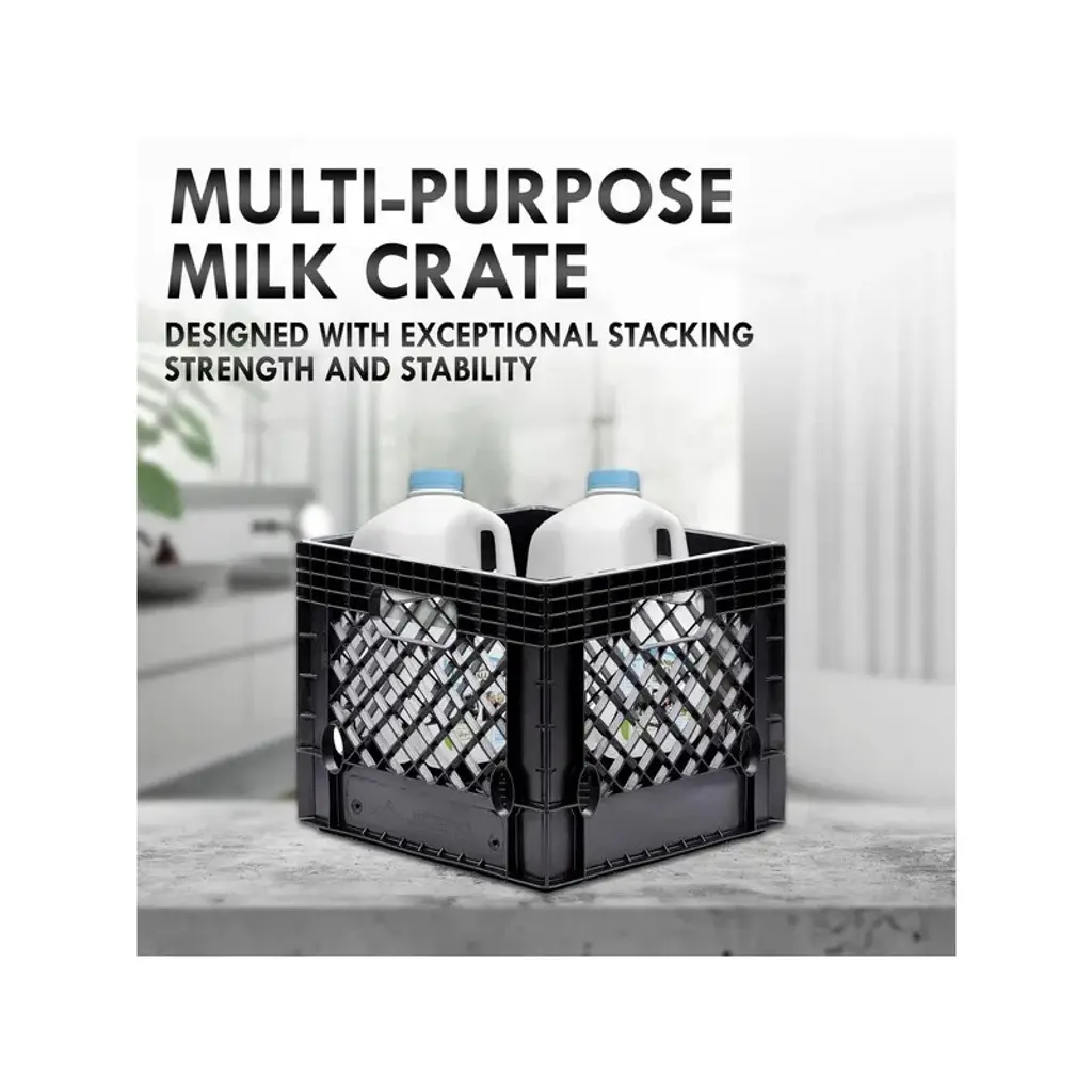 Racxily 5 Pack Heavy-duty Milk Crate, 16qt Square Storage Bin, Multi Purposes Storage Bin, Black