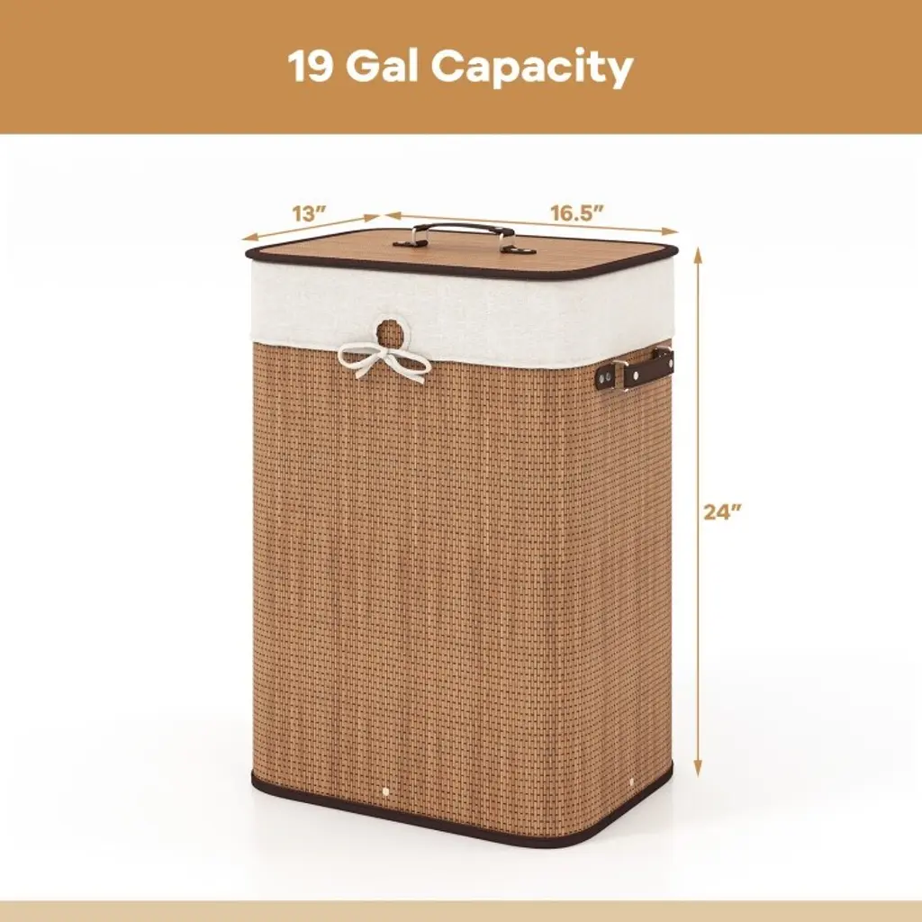 Rectangle Wicker Hamper Laundry Basket Washing Cloth Bin Storage Bag Lid 3 Color - 15.7" X 11.8" X 23.6"(l X W X H) - Yellow
