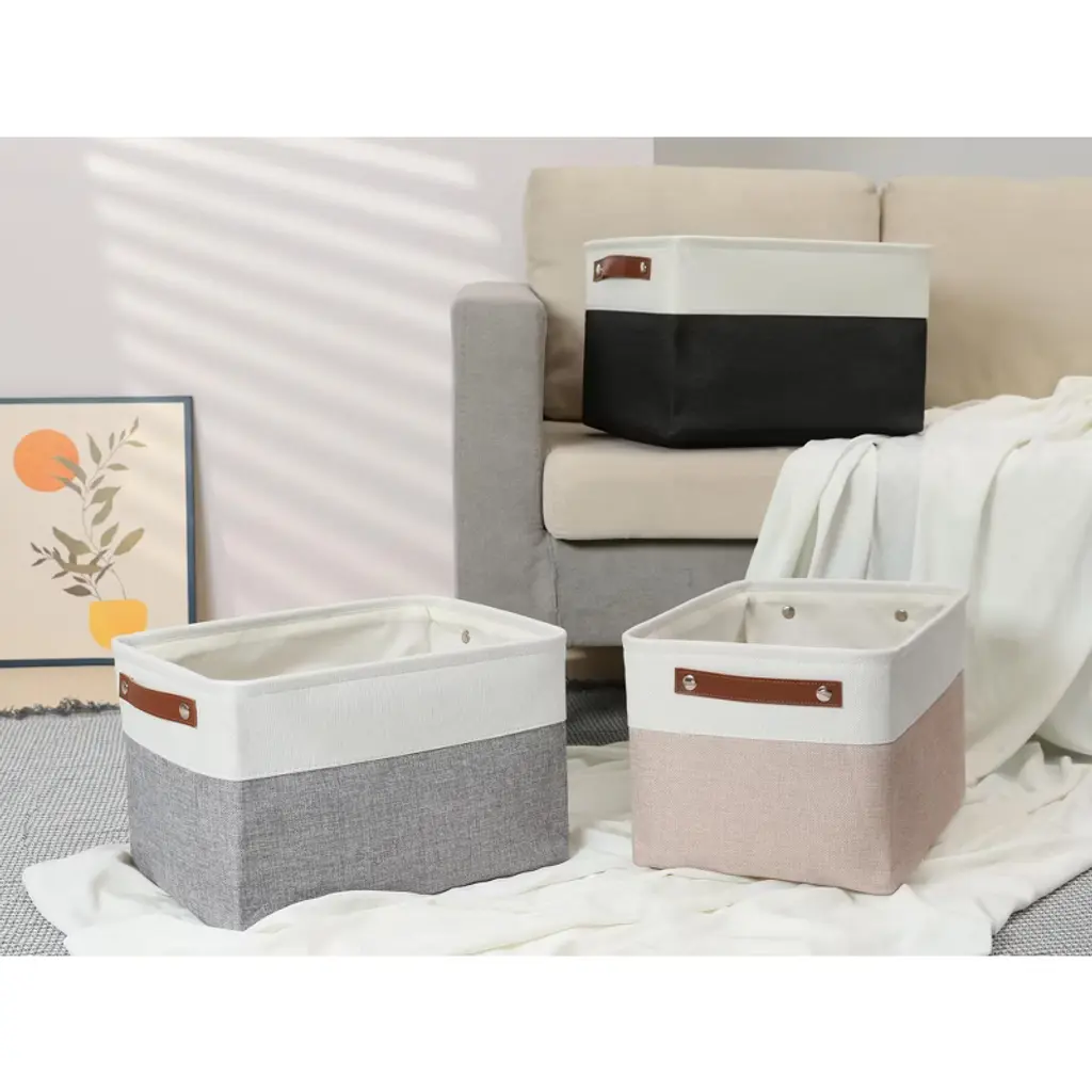 Baskets provide attractive lightweight solutions for all your storage and organization needs while keeping household items tidy and organized. These fabric storage bins are easy to carry or remove on a shelf. They could work well as drawers open-top bins or storage baskets for shelves. The versatile design allows them to be used in various settings, such as nurseries, living rooms, or offices. Their collapsible feature makes it easy to store them when not in use, maximizing space efficiency. With a stylish appearance, they can blend seamlessly into any decor while providing functional storage options.