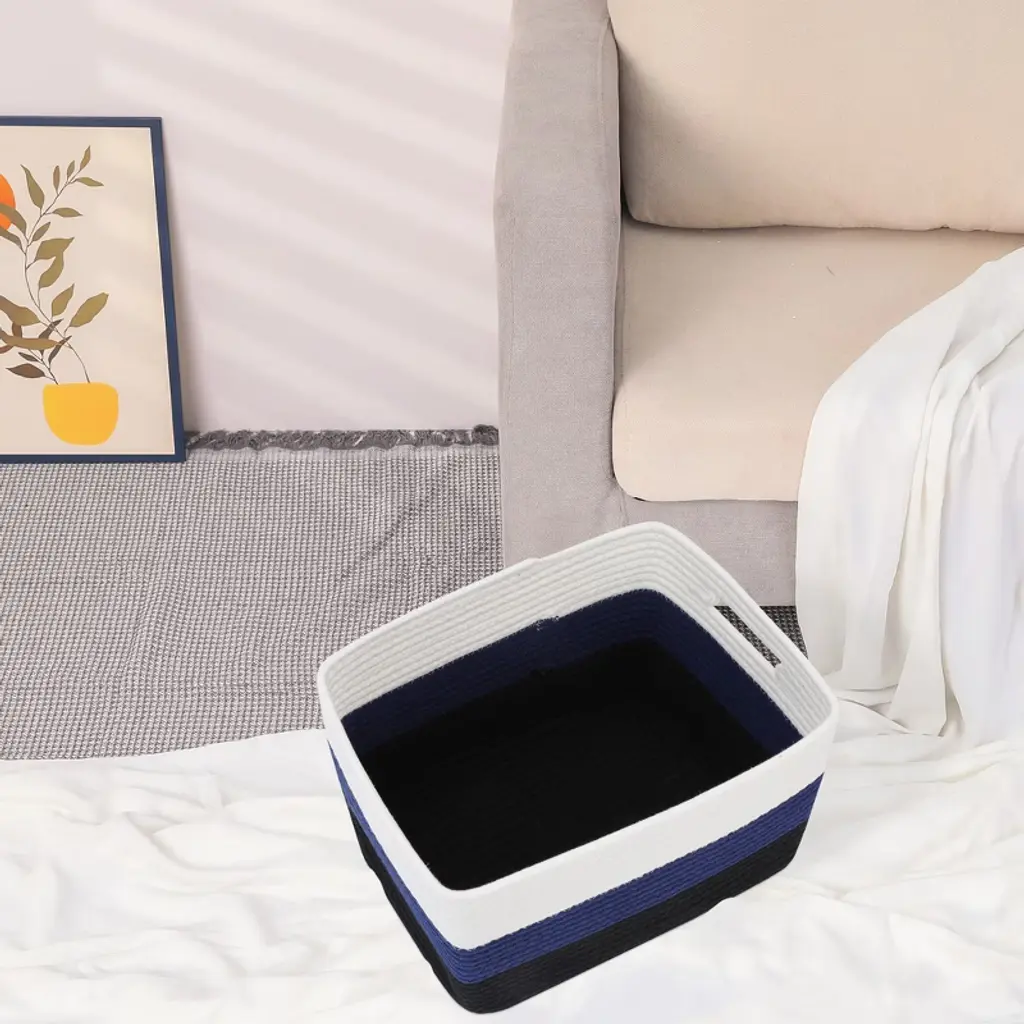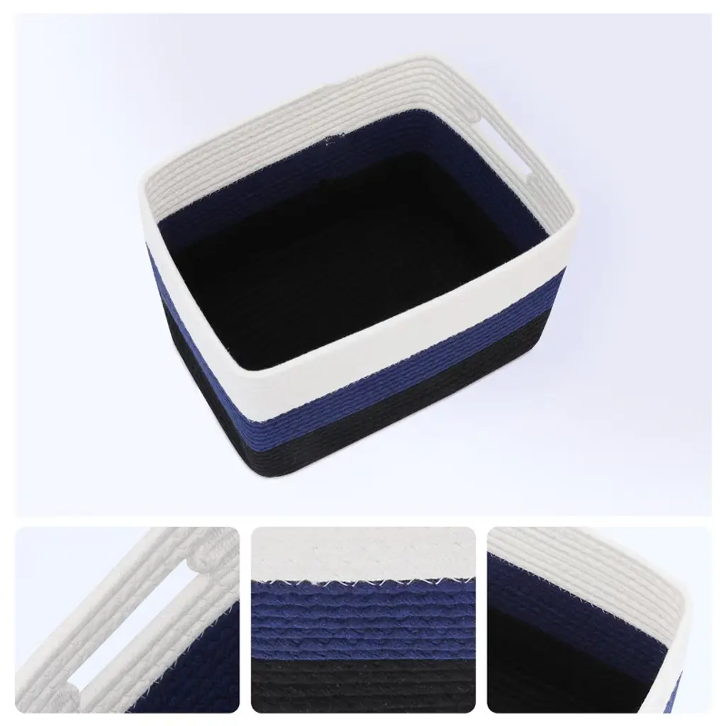 Regalwoven Cotton Rope Handcrafted Breathable Odorless Open Storage Bins 15 X 9.8 X 9.1 Inch 1 Pc Black Blue
