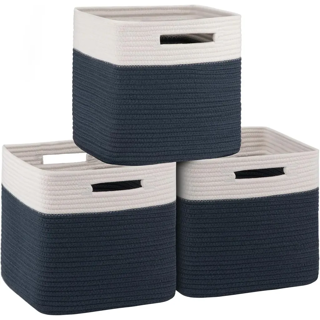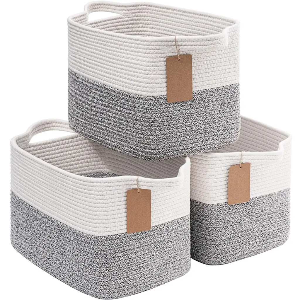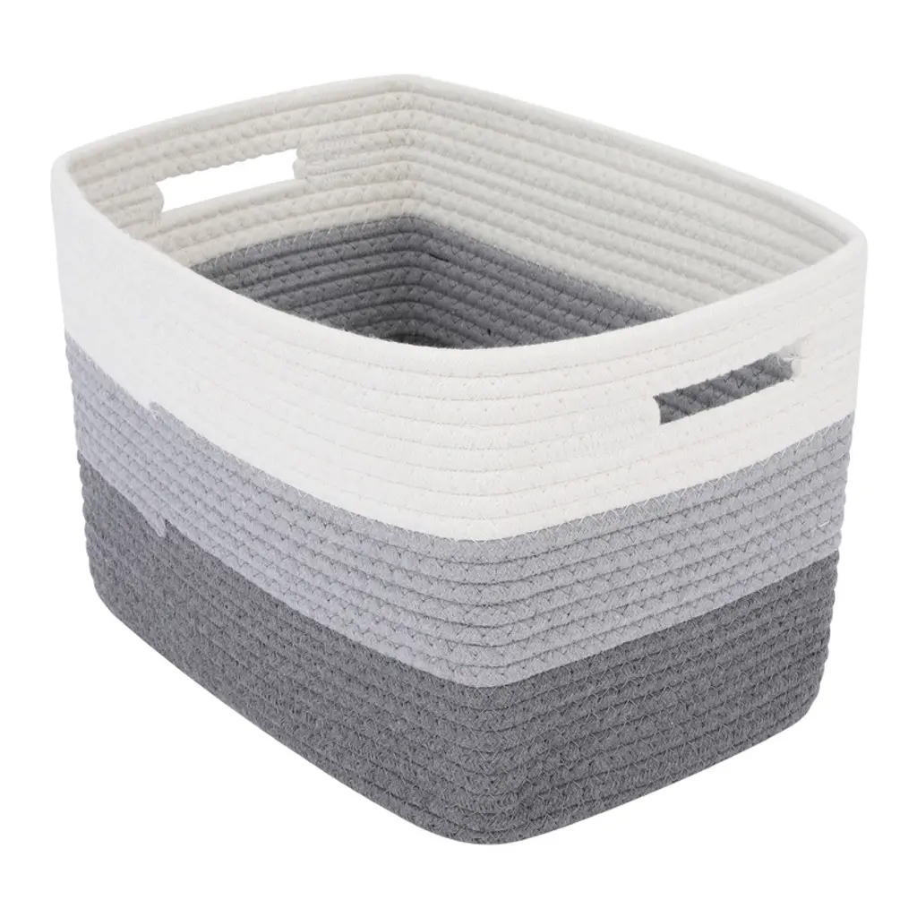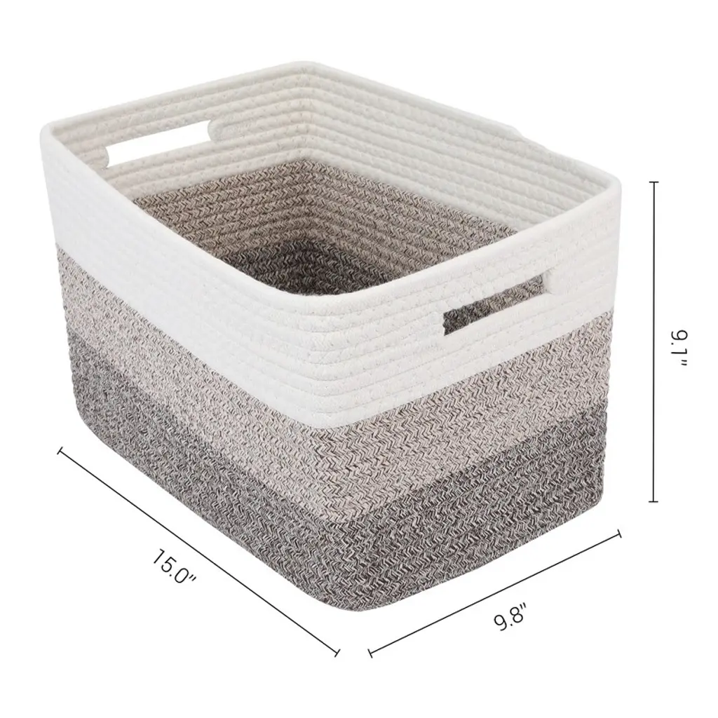 Regalwoven Cotton Rope Handcrafted Breathable Odorless Open Storage Bins 15 X 9.8 X 9.1 Inch 1 Pc Mixed