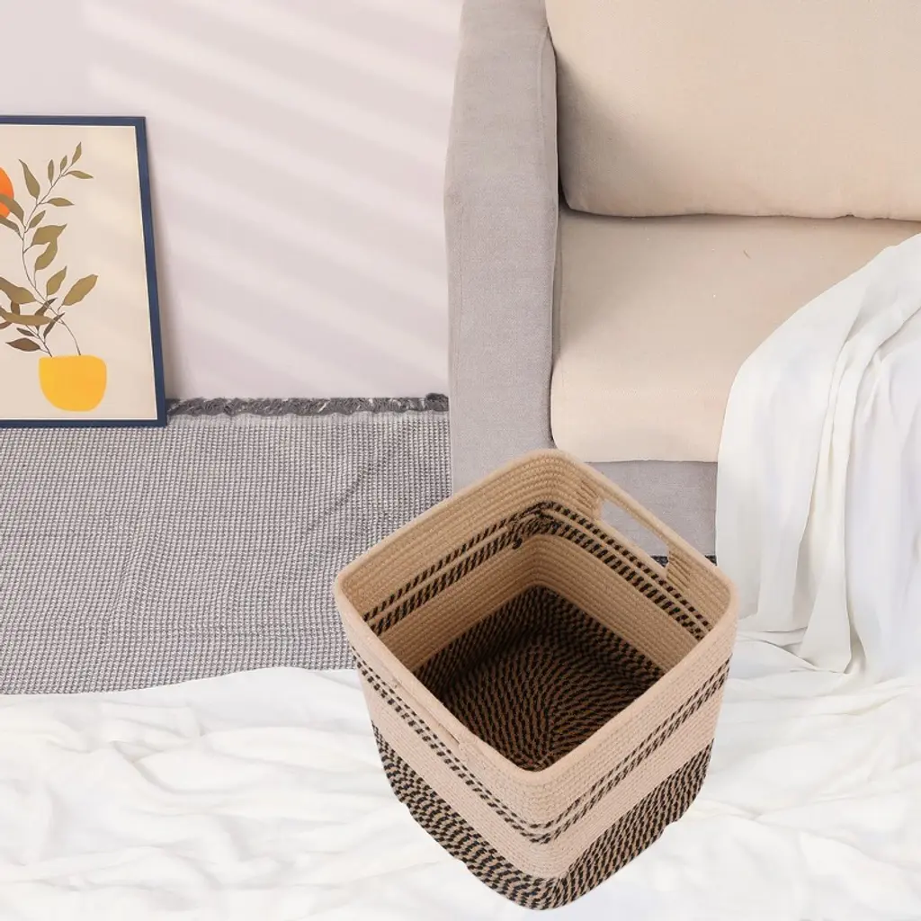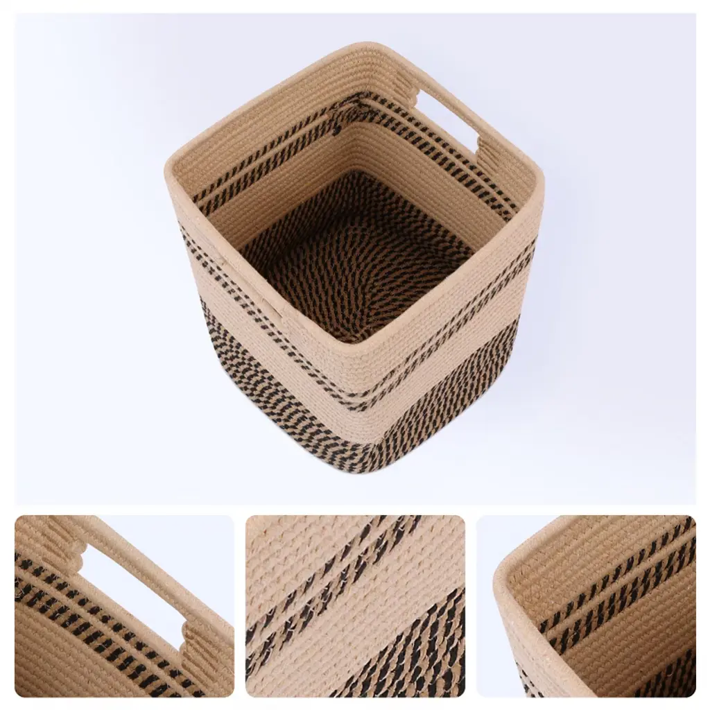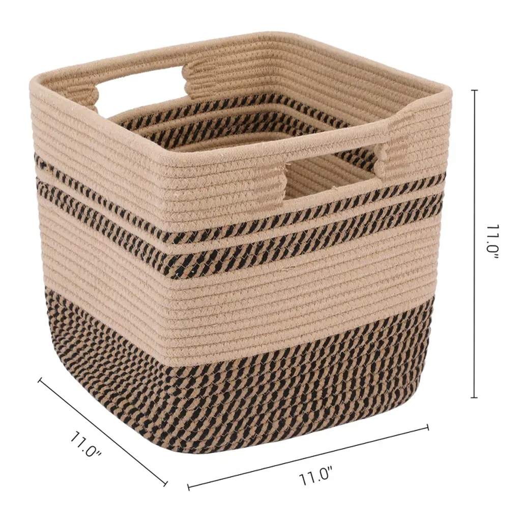 Regalwoven Cotton Rope Self-supporting Handcrafted Breathable Odorless Open Storage Bins 11 X 11 X 11 Inch 1 Pc Flaxen/black