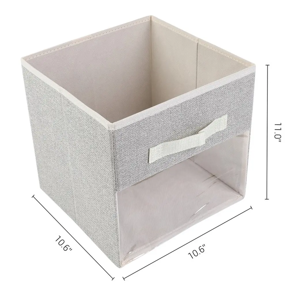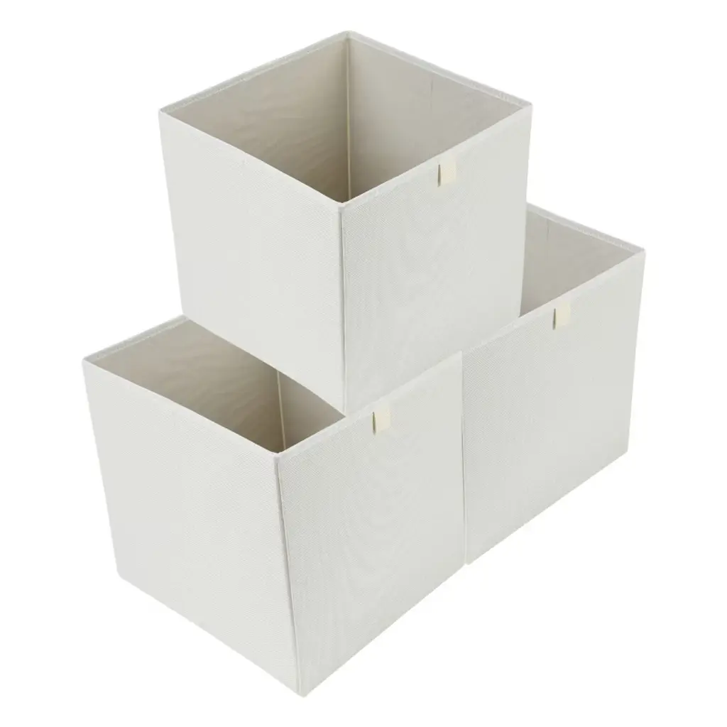 Regalwoven Fabric Collapsible Reinforced Mdf Bottom Storage Open Storage Bins 10.6*10.6*11in 3 Pcs Beige