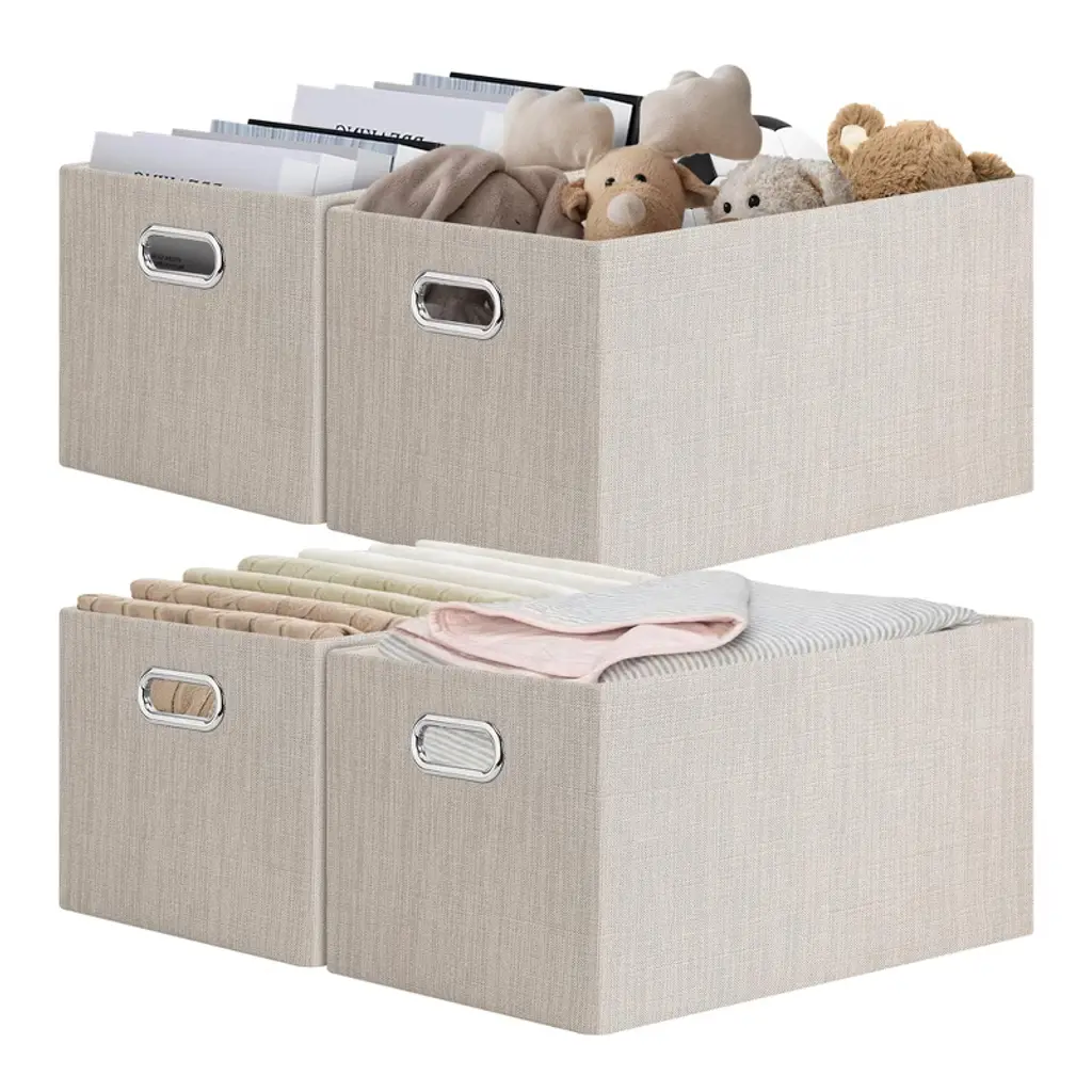 Baskets provide attractive lightweight solutions for all your storage and organization needs while keeping household items tidy and organized. These fabric storage bins are easy to carry or remove on a shelf. They could work well as drawers, open-top bins, or storage baskets for shelves. The versatile design makes them suitable for various settings such as nurseries, playrooms, and closets. Their collapsible feature allows for easy storage when not in use, ensuring they take up minimal space. With a stylish appearance, they can complement any decor while providing practical storage solutions for clothes, and other household items. The sturdy construction ensures they maintain their shape even when empty, making them a reliable choice for your organization needs.