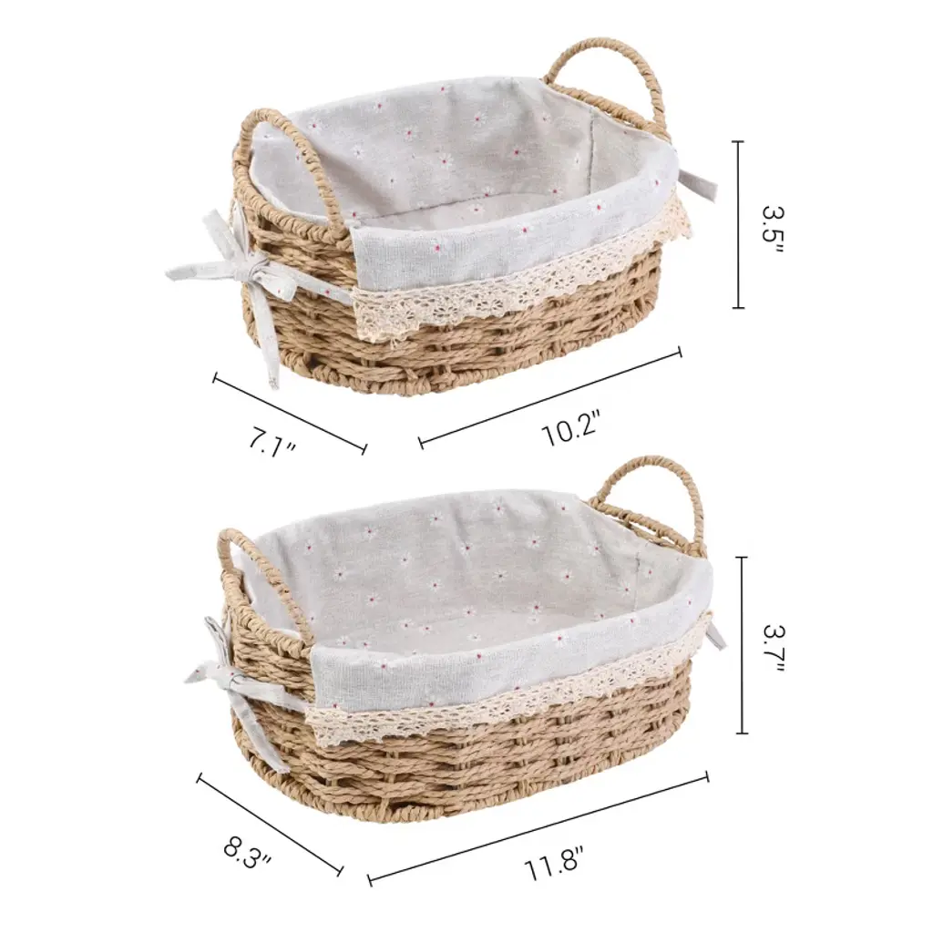 Regalwoven Natural Material Durable Multi-function Easy To Care Open Storage Bins 2 Packs 10.2*7.1*3.5in/11.8*8.3*3.7in Beige
