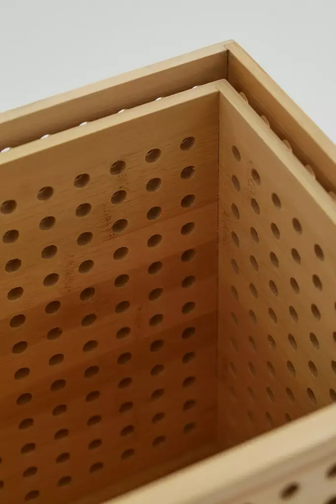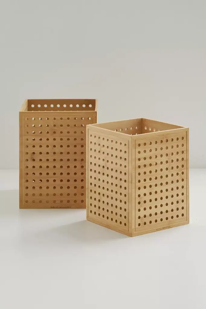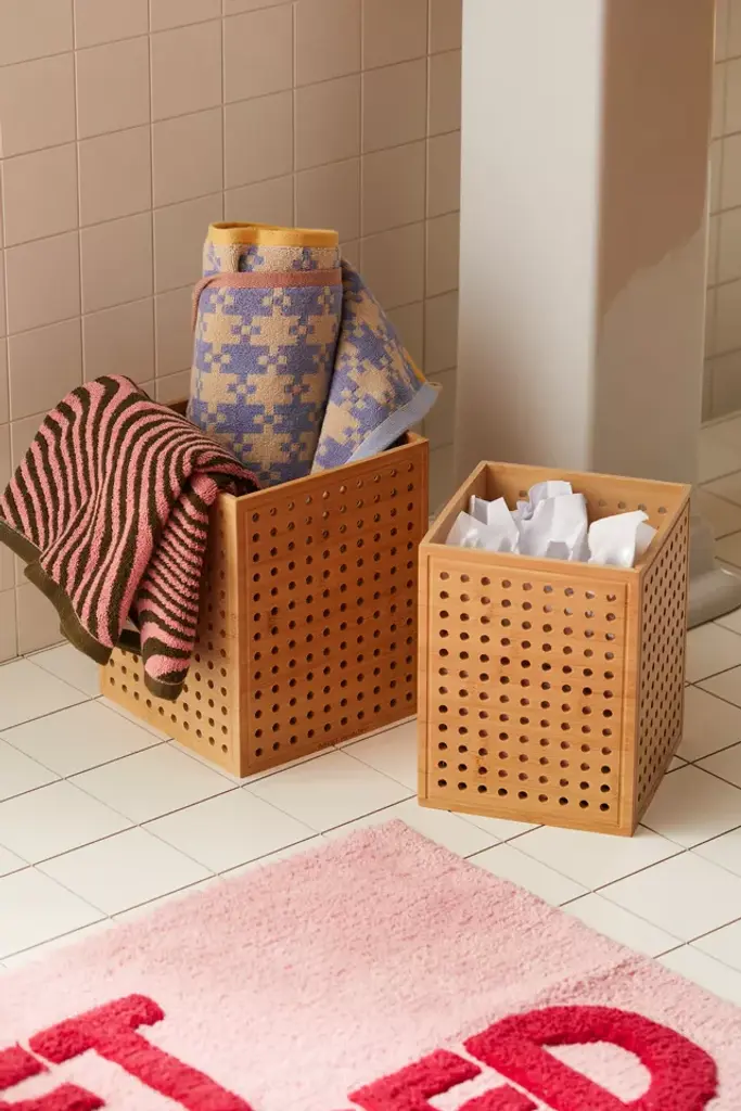 Trash has never looked better when it’s tossed in this set of waste bins. Complete with two various-sized bins that hold 2 to 2.5 gallons, this set of waste bins features an allover lattice design that offers a timeless look that blends with any décor style. The versatile design is perfect to use as a trash bin or to store towels, blankets and other small essentials. Pair it with other favorites from the Riley collection to create a cohesive set.