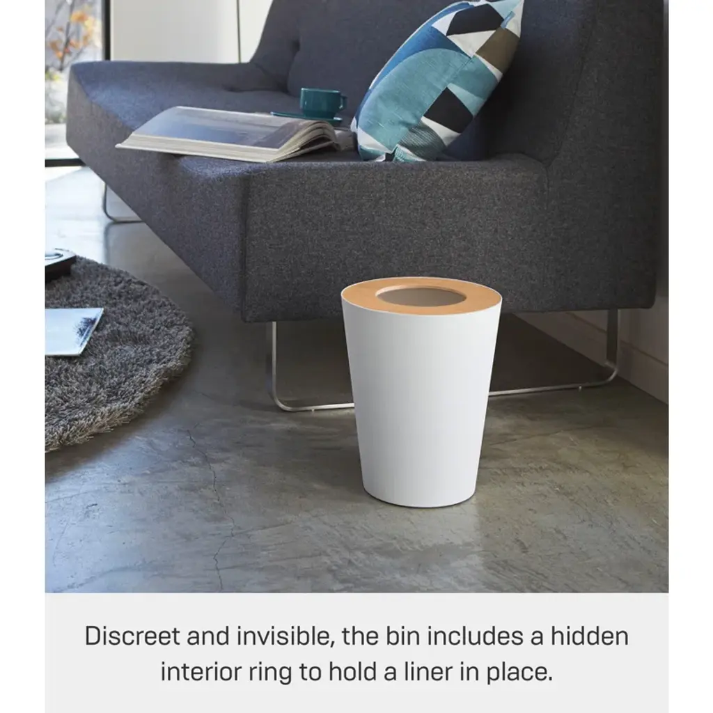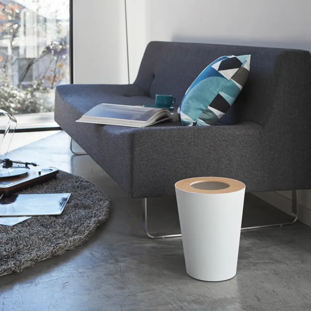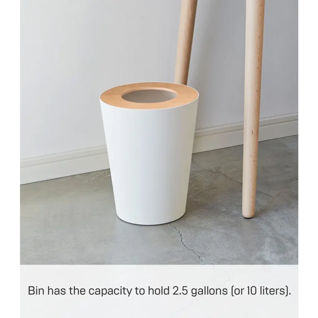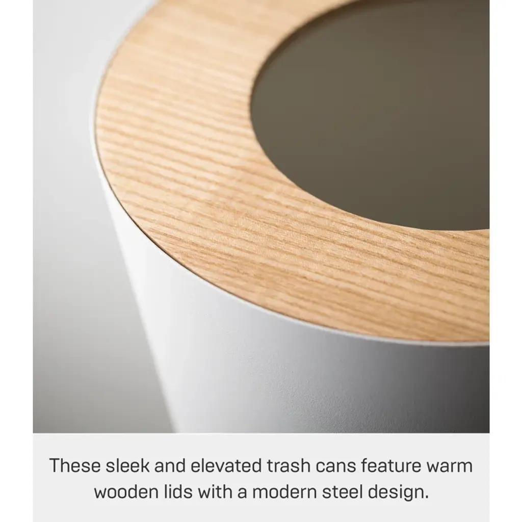 Rin Yamazaki Home Round Trash Can, 1.85 Gallon Wastebasket Bathroom Kitchen Office, Steel + Wood