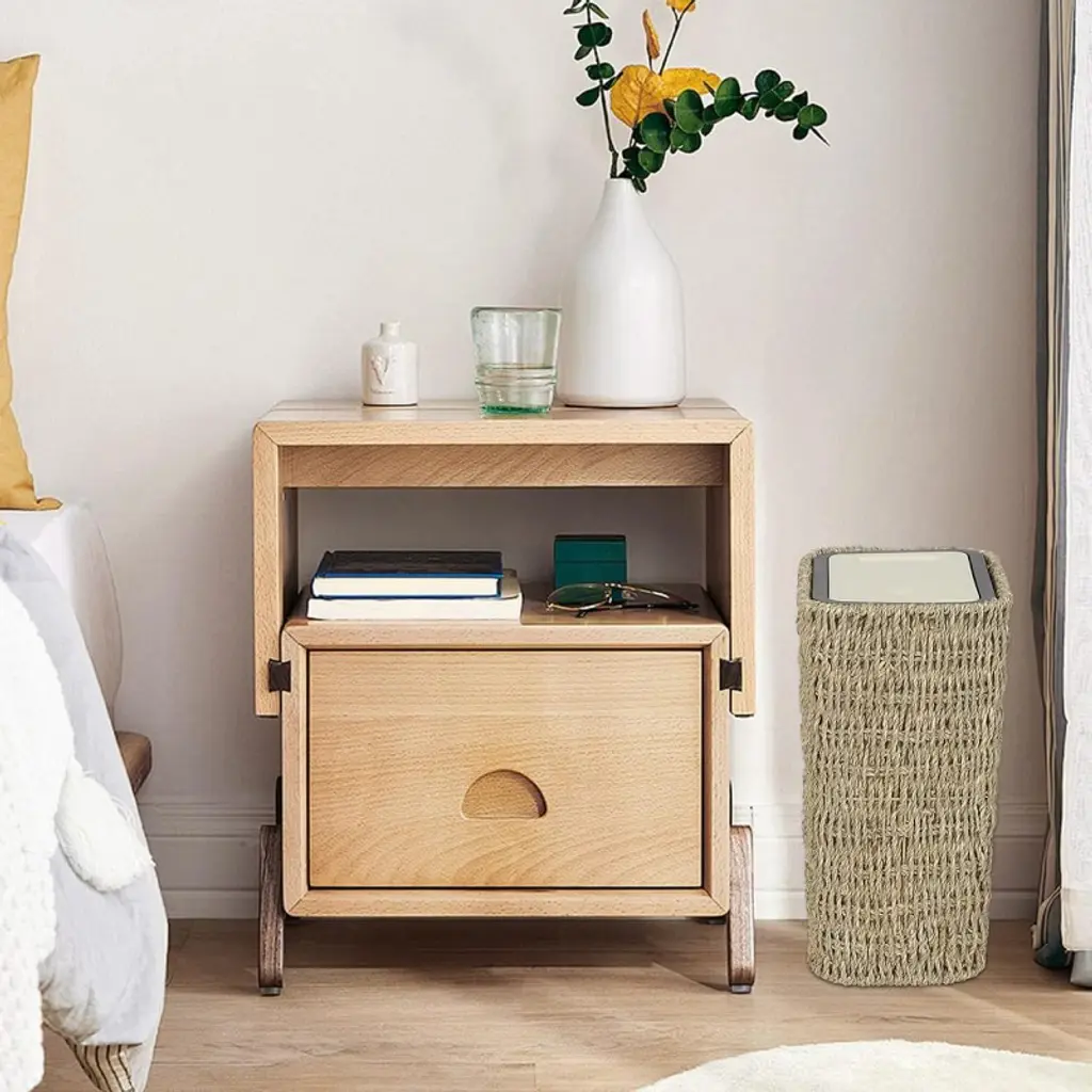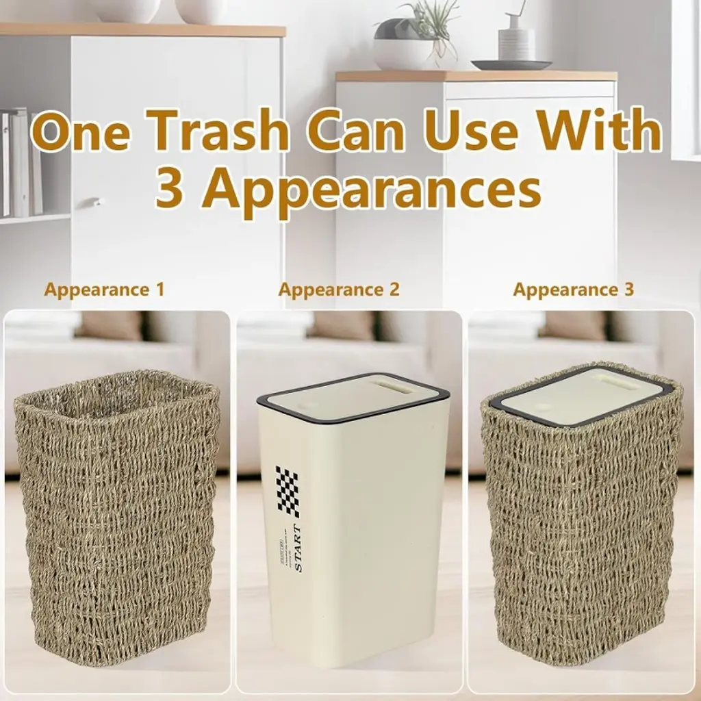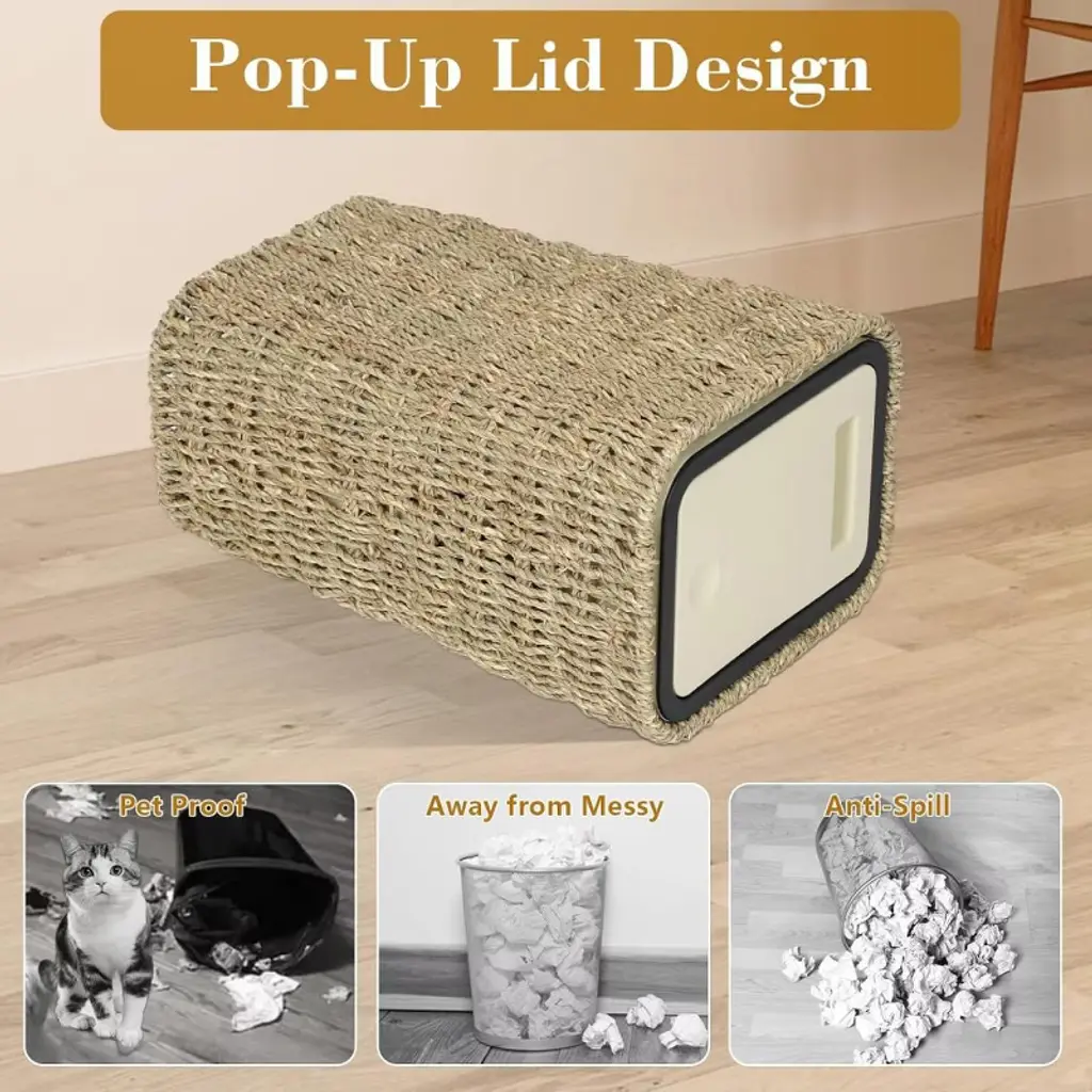 This wicker basket is neat and tidy. Clean lines and smooth surfaces of diaper trash can make it easy to keep clean and maintain. Under sink trash can traps garbage smells inside, so your space smells fresh and clean all the time. With this pop up trash can with lid, you can say goodbye to unsightly messes and unpleasant odors!