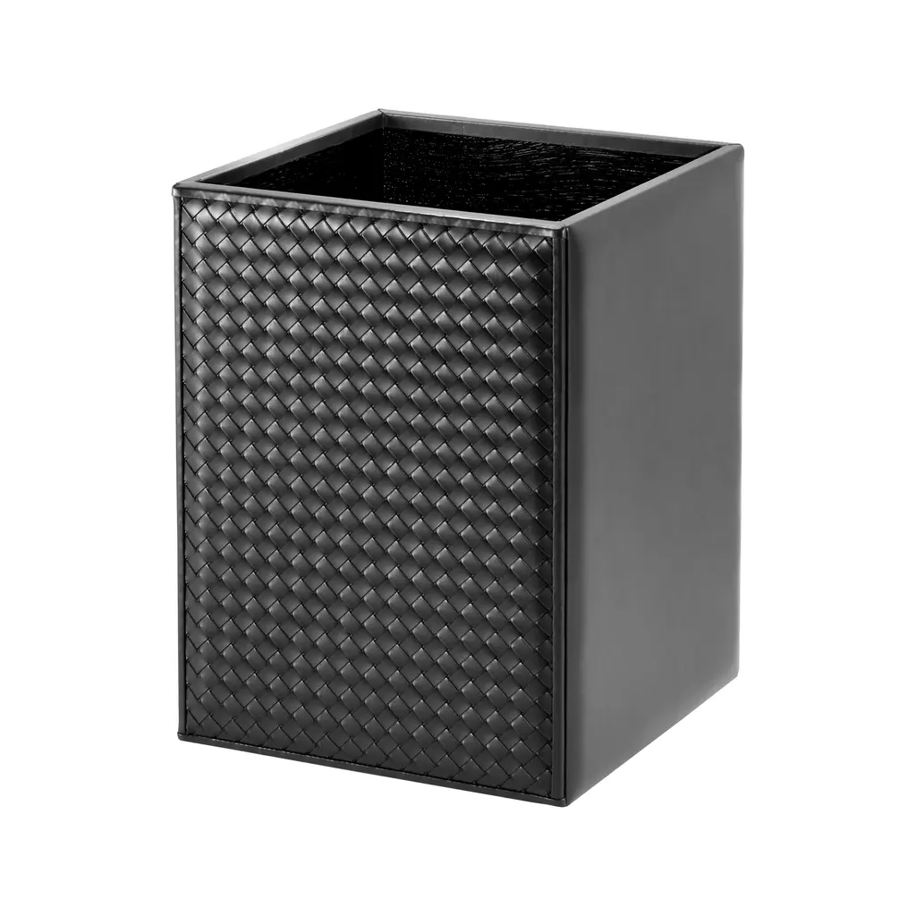 A celebration of artisanal texture, the Ivo Handwoven Bin is a sophisticated and architectural design from the Giobagnara and Riviere collaboration. Expertly handcrafted in Italy, this piece features two sides meticulously handwoven from fine leather for a wonderfully rich finish. The interior reveals another layer of refinement with a smooth, varnished wood lining that is both beautiful and practical. A fusion of heritage craft and fine woodworking, it’s an exquisite accent for any curated office or study. Highlights: