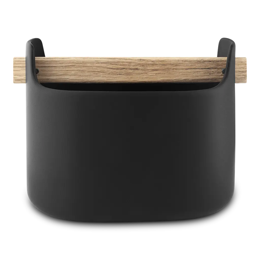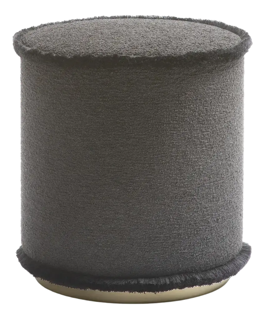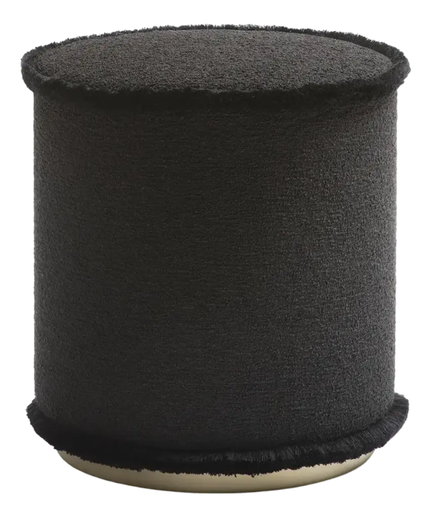Round Black Shearling And Leather Storage Bin By Moses Nadel