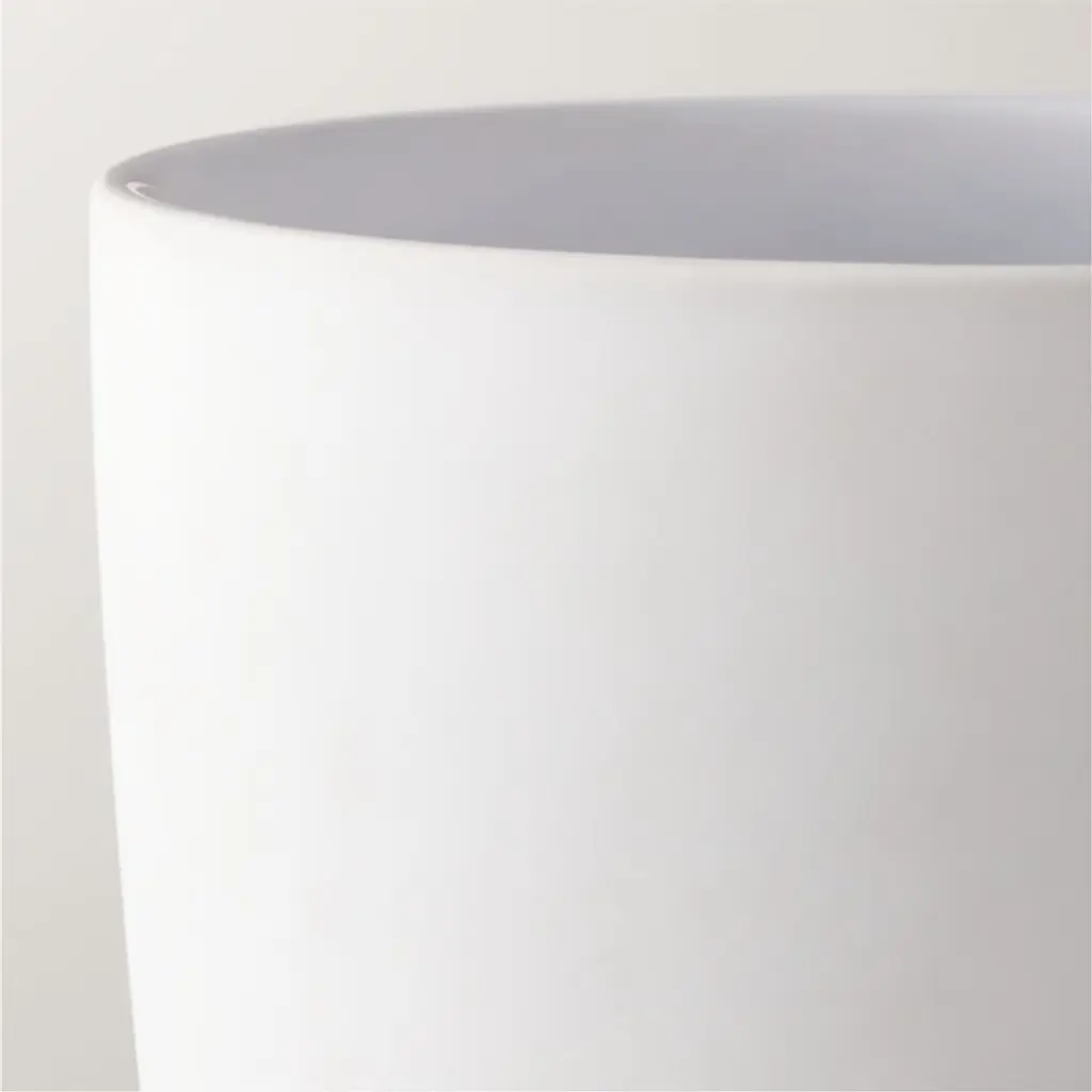 White wastecan offers clean storage with a surprising surface of white rubber. Go for a full sensory experience with all of our rubber coated white accessories. CB2 exclusive.