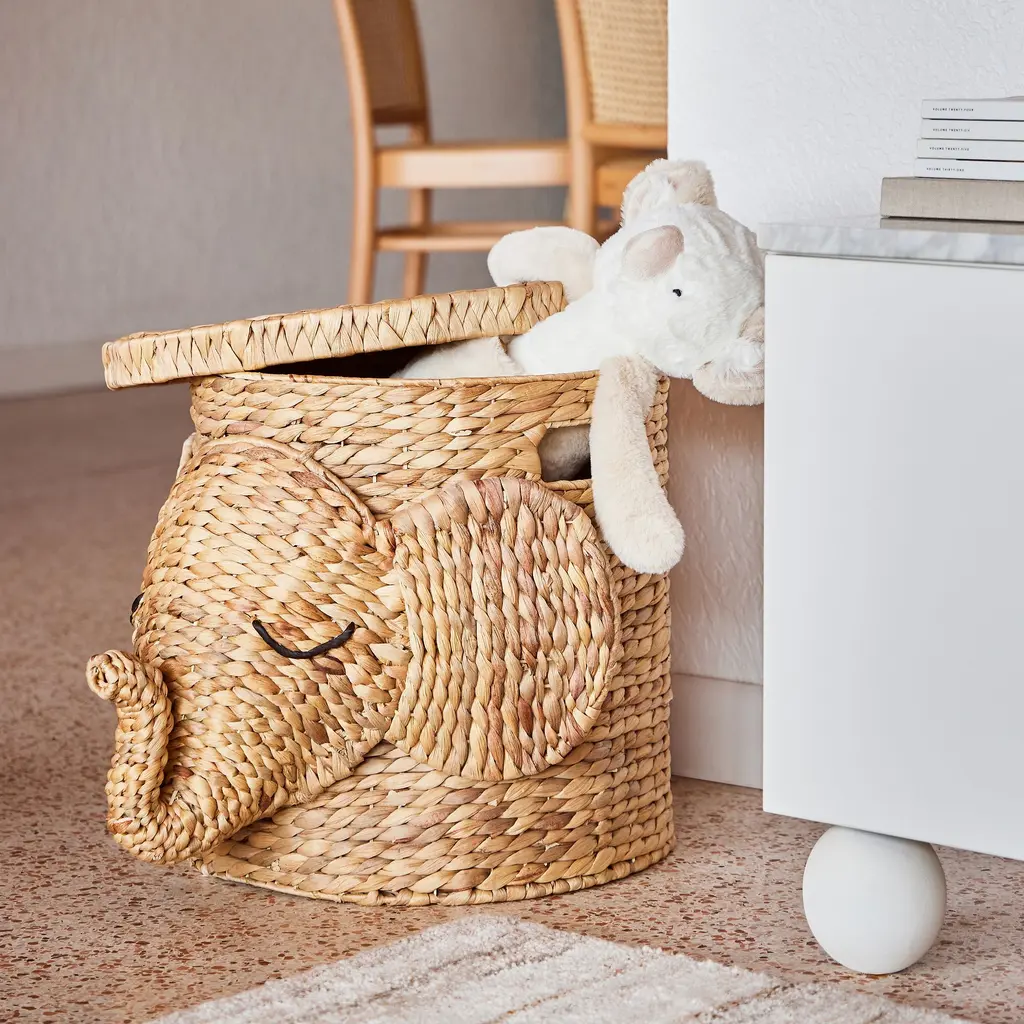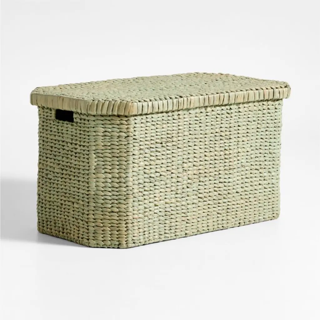 Our Rudy rattan toy bin by designer Jake Arnold works double-time in a kid's playroom or bedroom: It's both a spacious, lidded hideaway spot and an earthy accent piece, made of handwoven water hyacinth in a decorator-approved shade of sage green. It makes cleanup a breeze, keeping floors clear and clutter out of sight.For his first-ever baby & kids collection, exclusively at Crate & Kids, interior designer Jake Arnold was inspired by the dreamy childhood spaces he's created for A-list clients.