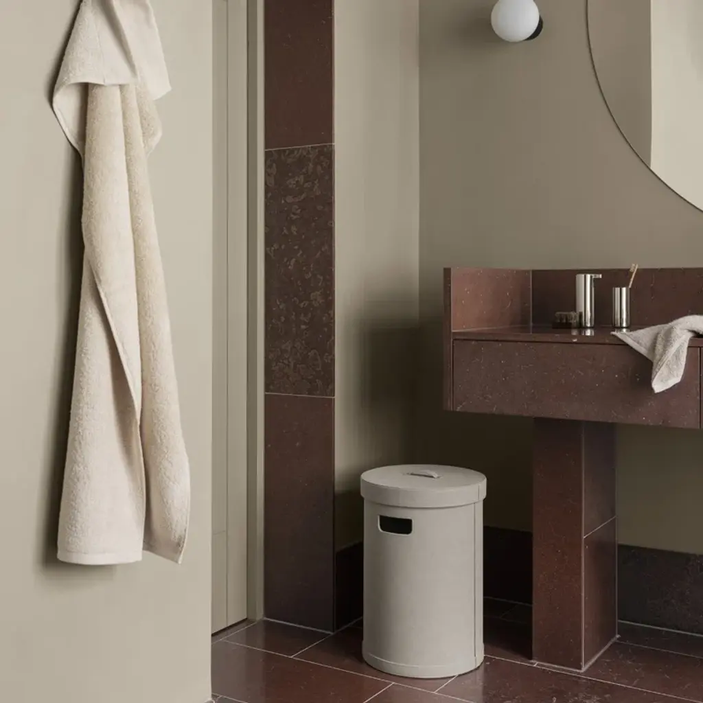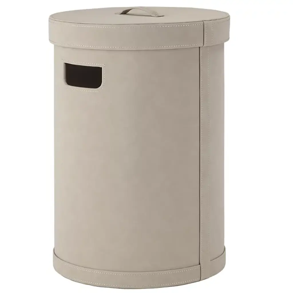 The SAHLA Decorative Storage Bin with Lid features a classic cylindrical shape with a soft faux suede cover to create a sophisticated but subtle practical storage container. SAHLA, meaning 'simple and discreet' in Samoan provides a perfect hiding spot for toys, games, blankets, or laundry. Handles make the SAHLA easy to move.