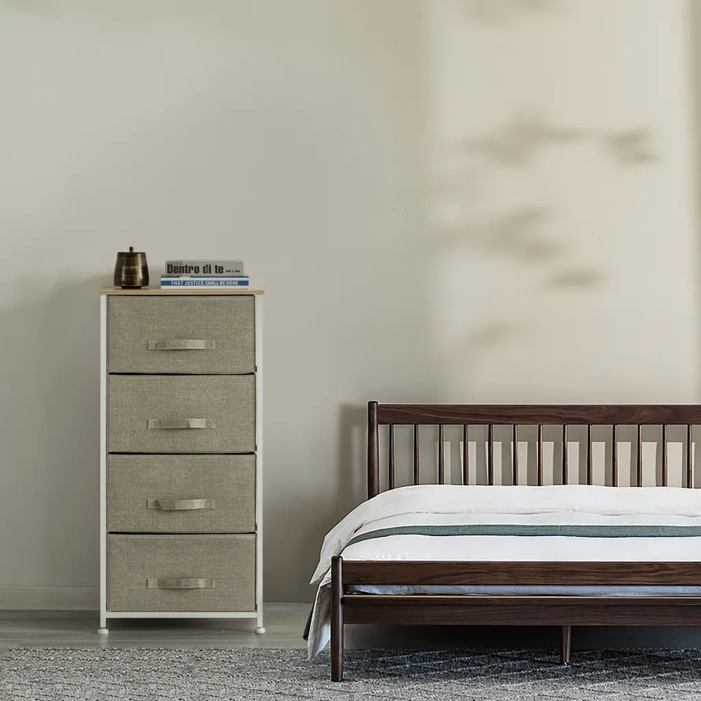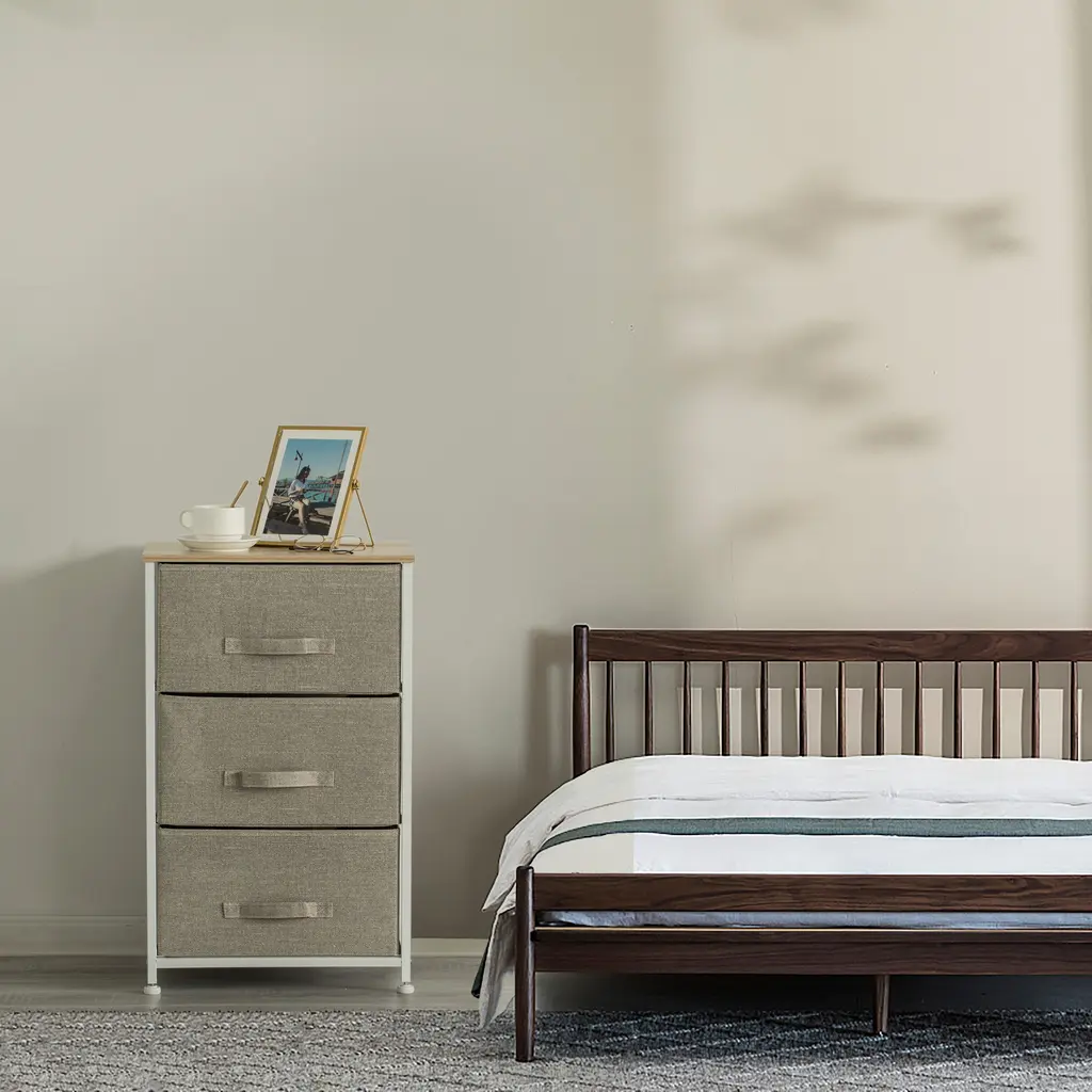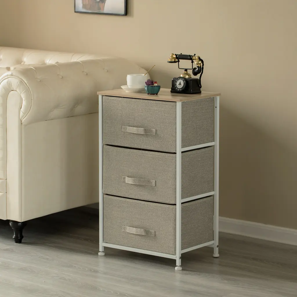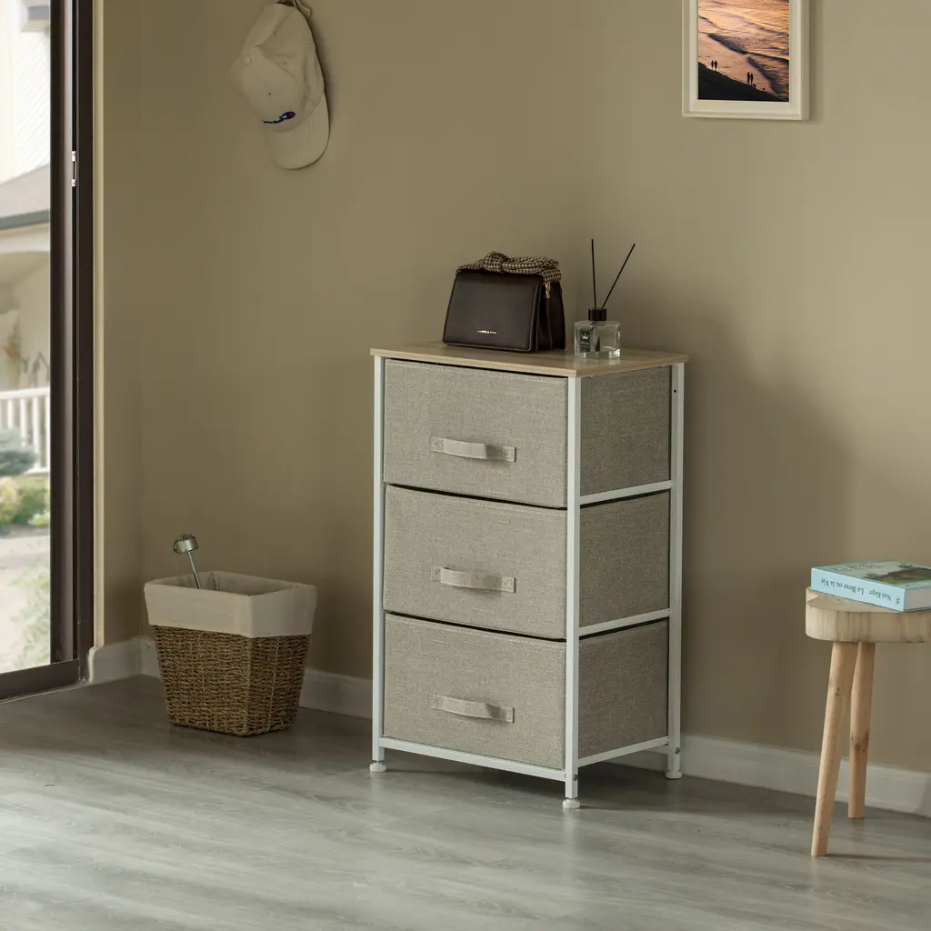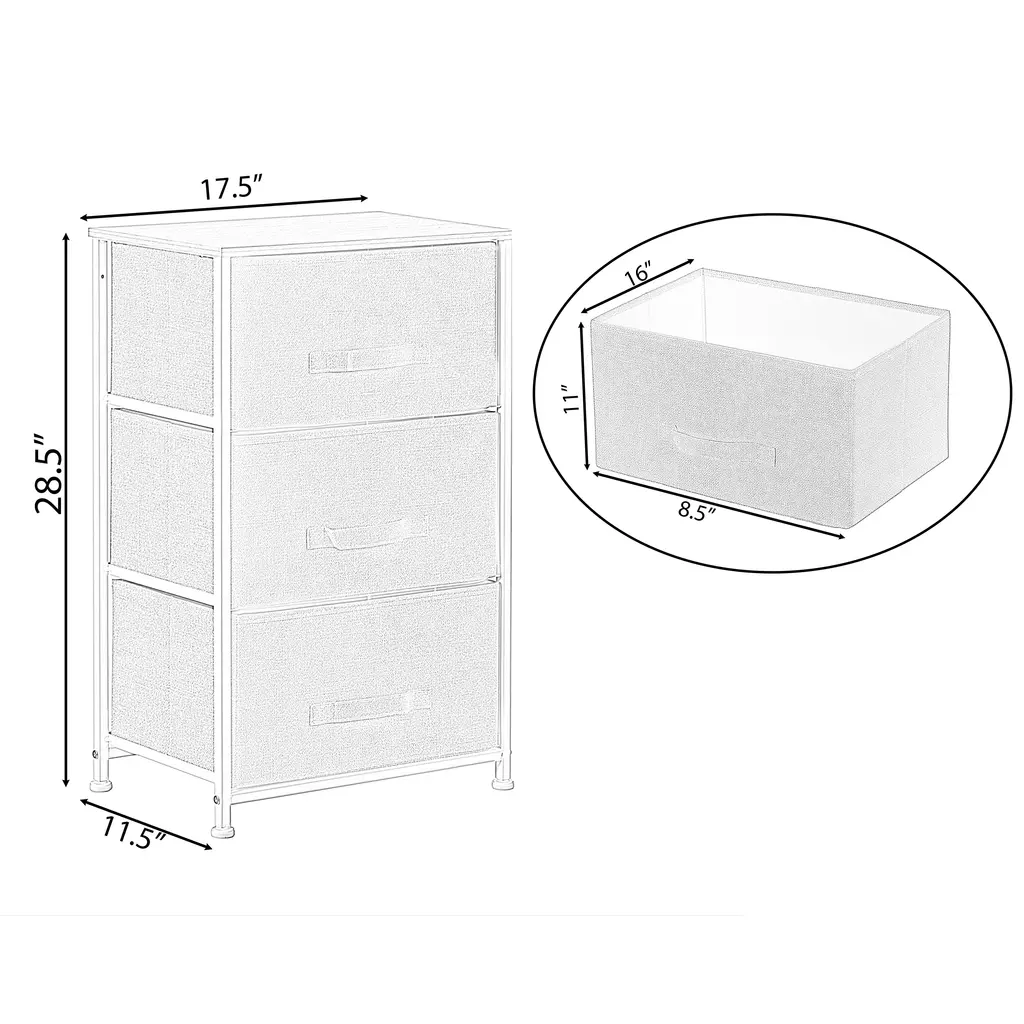 Sand Beige Bins And White Frame Storage Night Chest And Storage Chest - 3 Drawer