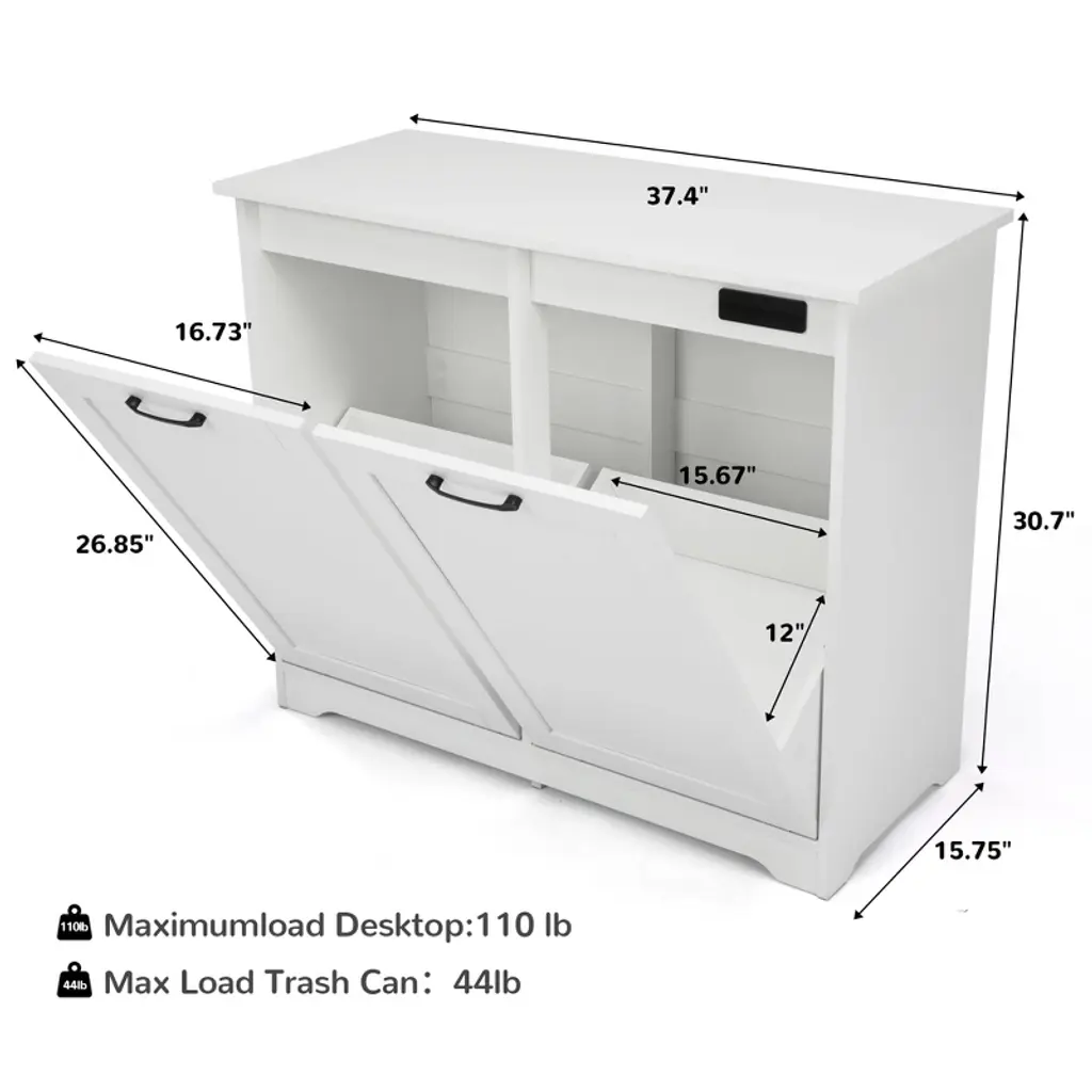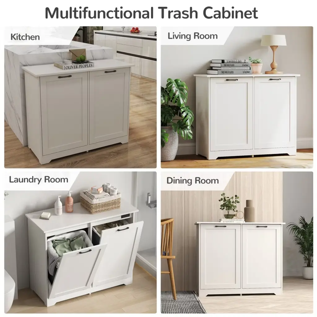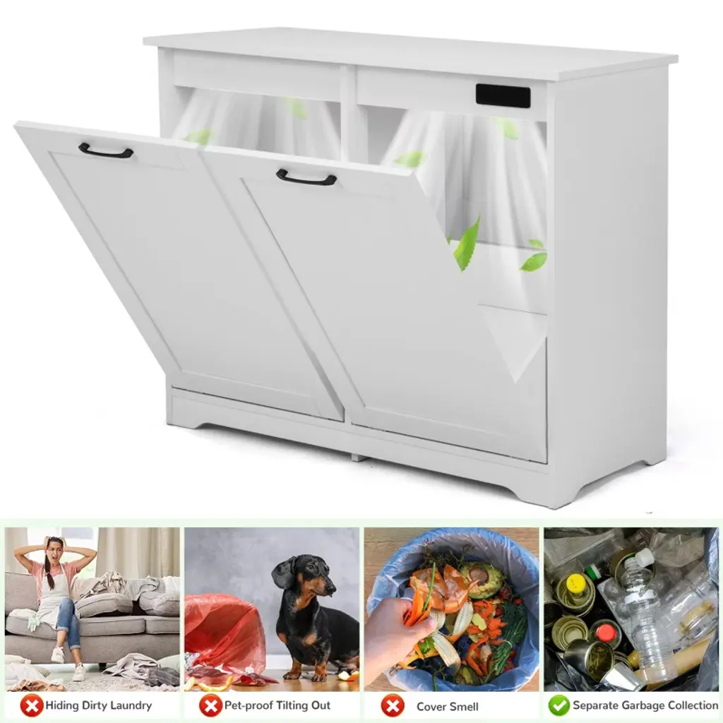 Sandinrayli 20 Gallon Tilt Out Wood Trash Can Cabinet With Deodorizing Function Laundry Hamper, White