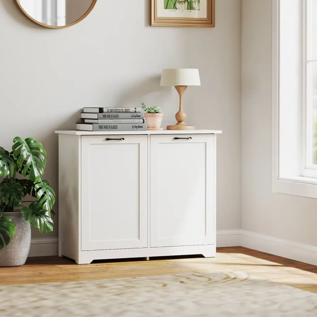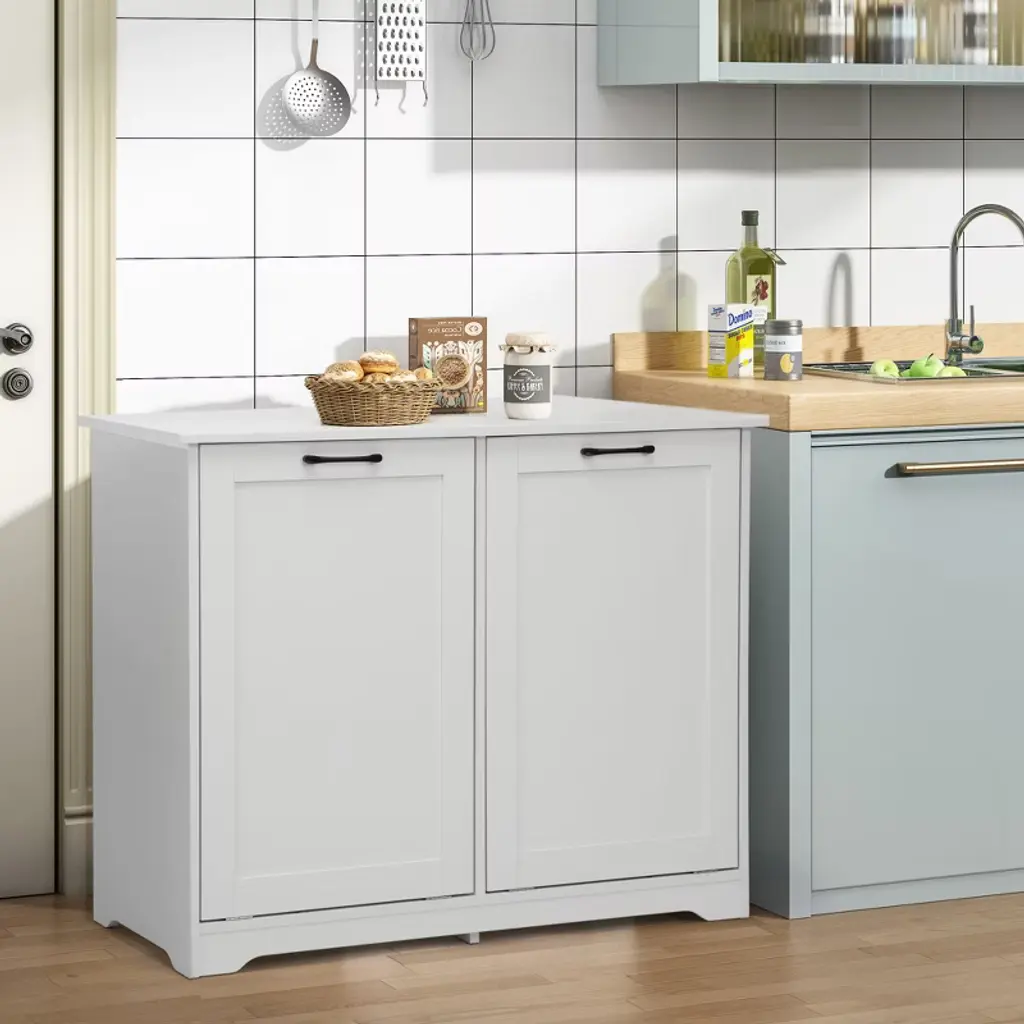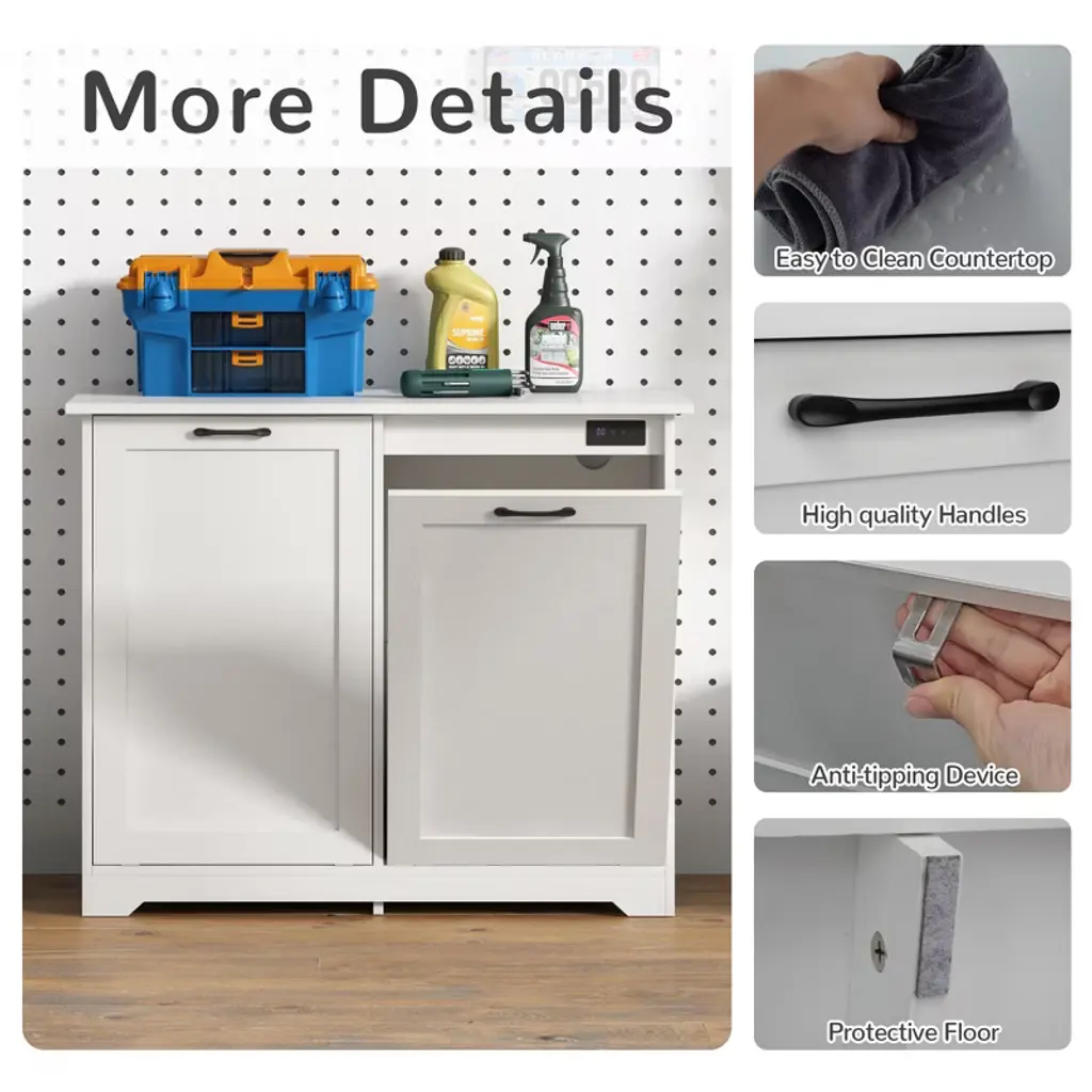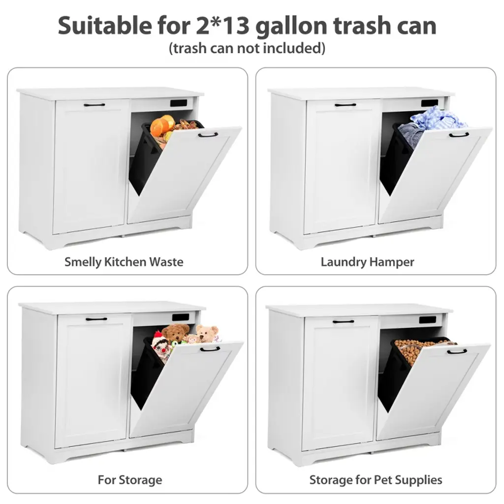 Sandinrayli 20 Gallon Tilt Out Wood Trash Can Cabinet With Deodorizing Function Laundry Hamper, White
