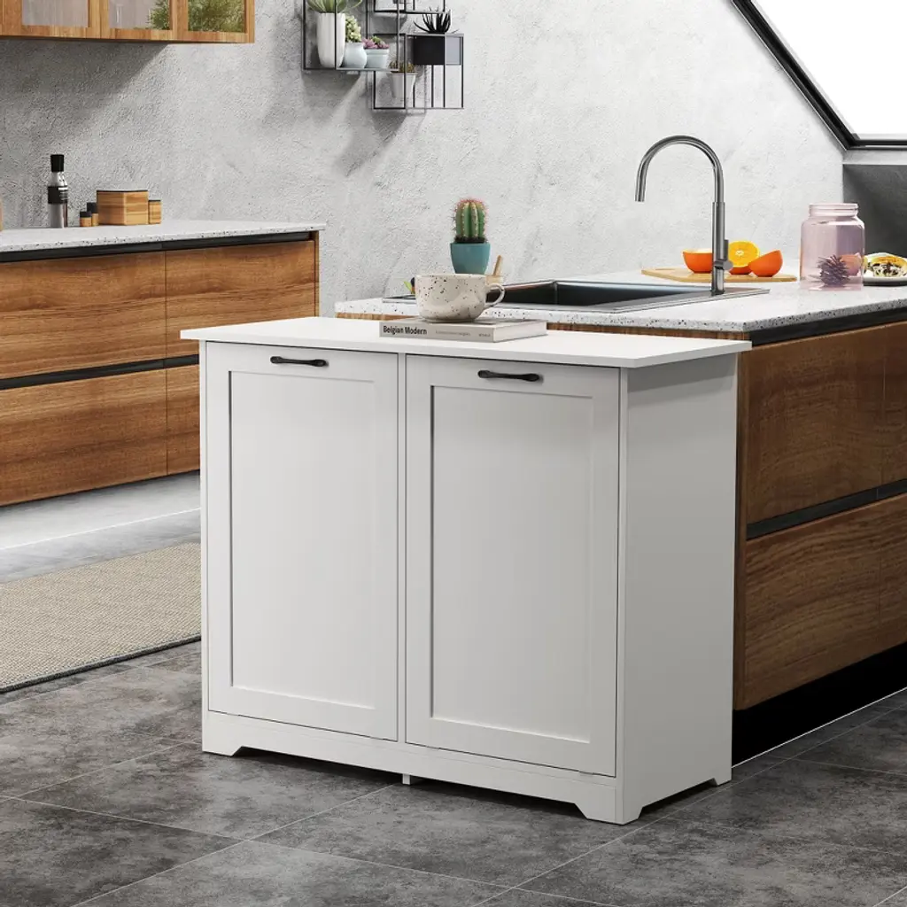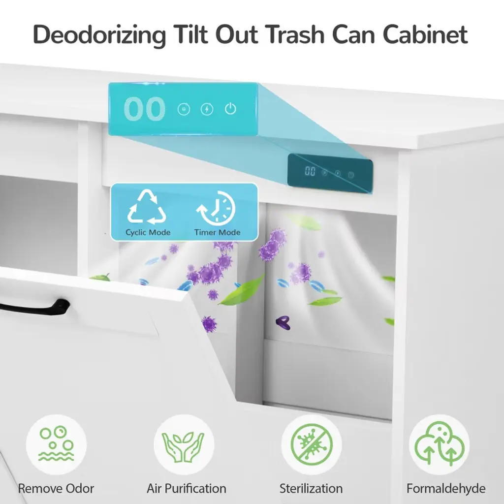 Not only a hub of culinary creativity but also a sanctuary of cleanliness and hygiene, this Dual-Door Trash Can Cabinet is the ultimate solution to your waste management needs, helping to maintain a tidy look without sacrificing practicality. Open the doors to reveal an inclined structure that adeptly conceals your trash bins, while keeping odors at bay when closed. The odor-eliminating system kicks in, ensuring your kitchen remains a fragrant-free zone. Use this modern trash bin cabinet to create a more hygienic and enjoyable kitchen experience.