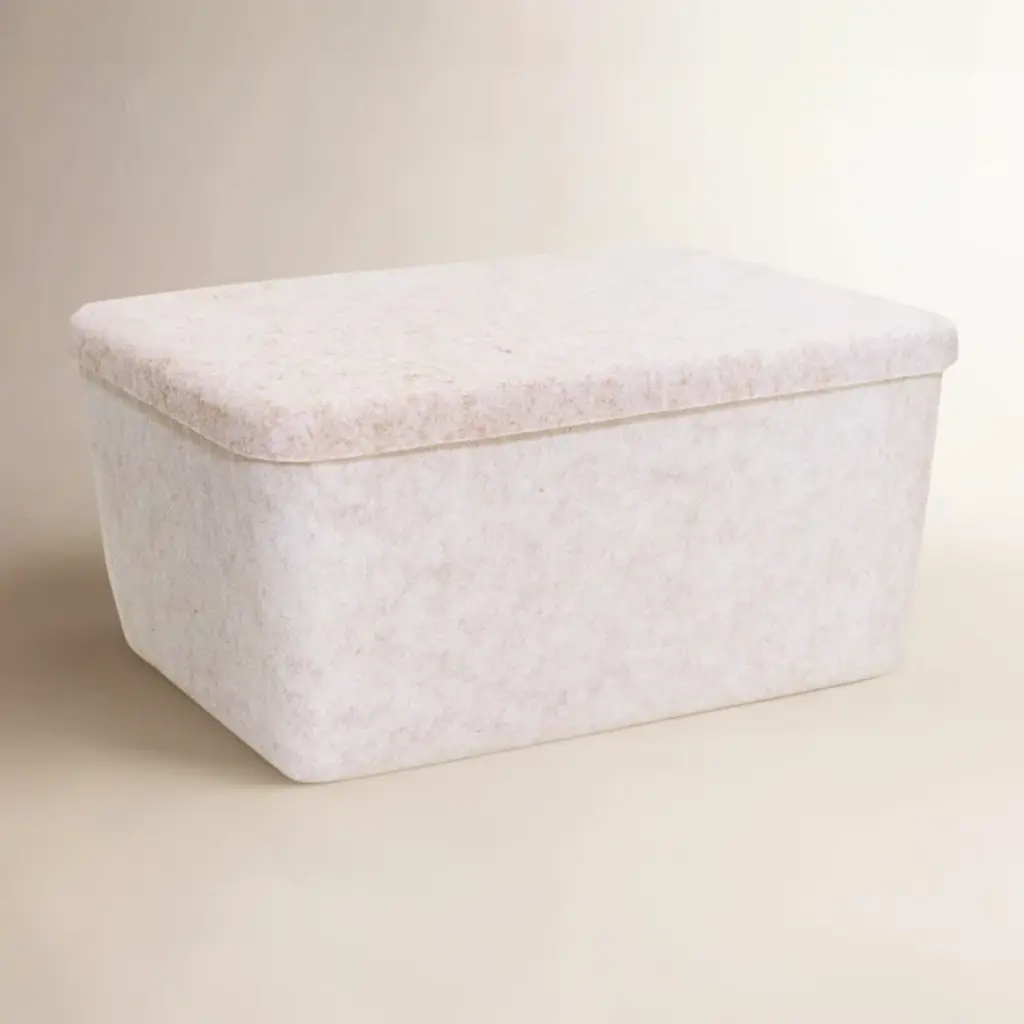 Sculpted Felt Storage Bin - Long With Lid (Set Of 3)