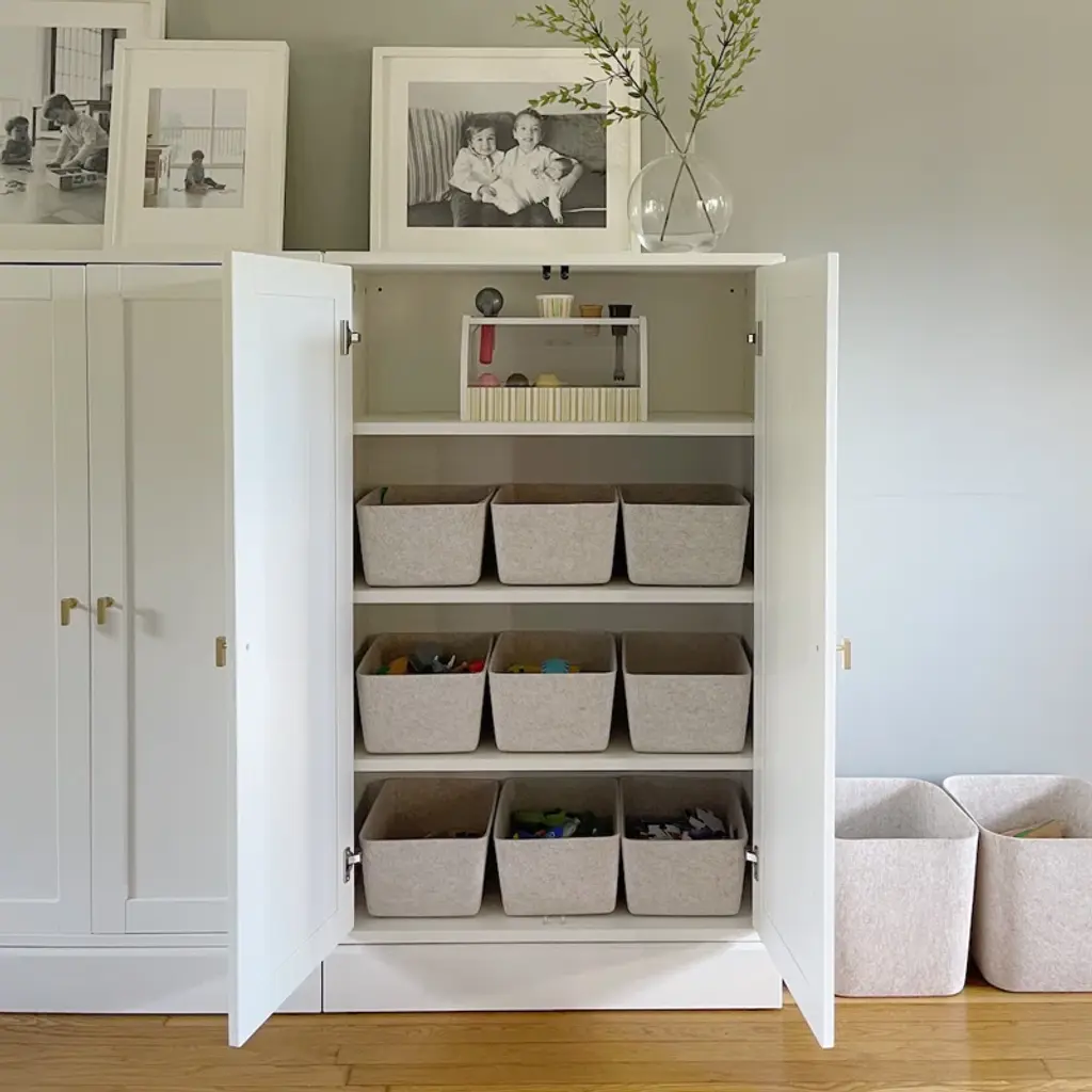 Our Sculpted Bin - Wide offers a spacious solution for those who need a compact bin without compromising style. Structured to maintain its modern shape, this durable storage bin is perfect for organizing items like clothing, toys, and kitchen or pantry supplies. Keep your space neat, stylish, and clutter-free with this versatile storage bin. SortJoy Bins are perfect for the playroom, kitchen, pantry, bedroom, living room and so much more.