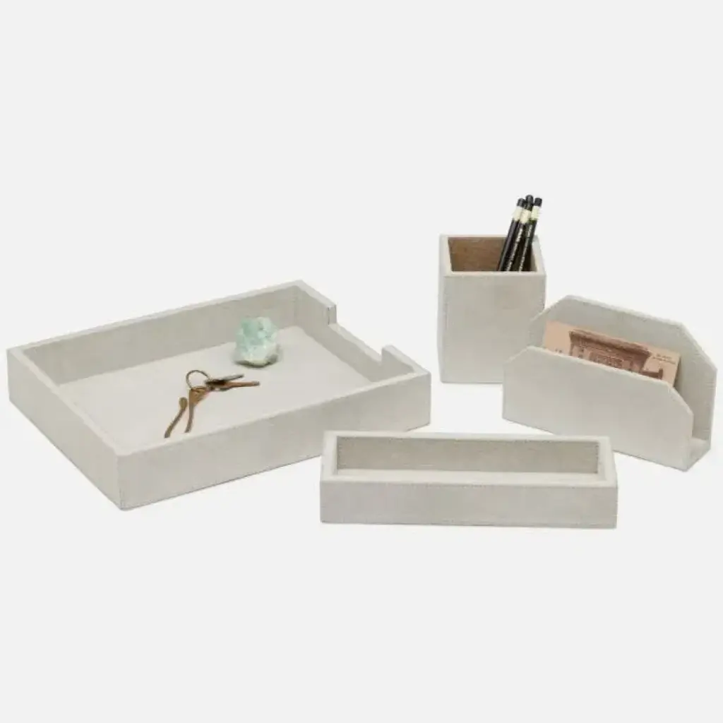 The gray soft suede leather and refined stitching detail of this timeless office collection brings luxury to the workplace. The designers at Pigeon & Poodle believe the details of a home are just as important as the furniture. A gorgeous toothbrush holder or handcrafted canister can elevate an entire bath, the perfect frame can heighten the feel of a whole space, and a good-looking storage basket can be your look’s missing link. With thoughtful design and top-notch craftsmanship, Pigeon & Poodle create home accessories with the care and attention typically reserved for larger pieces of décor.