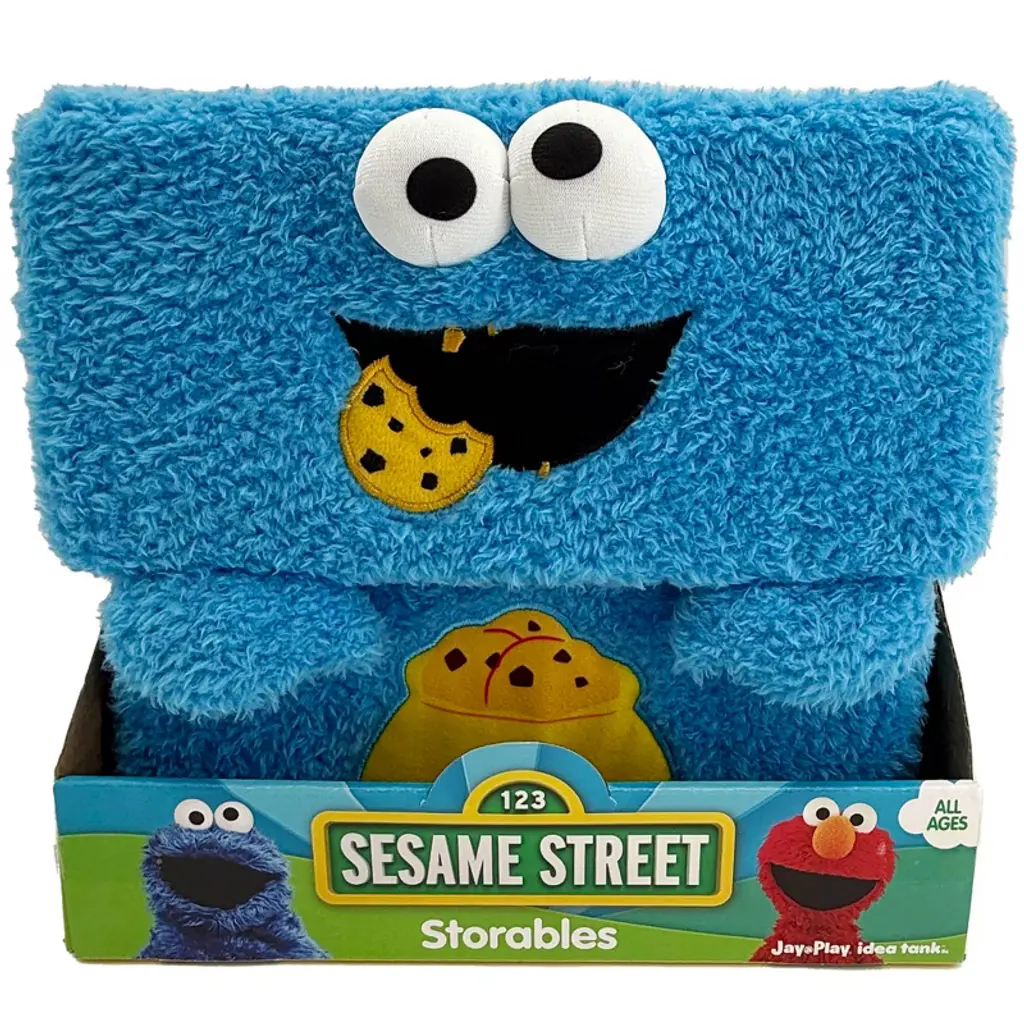 SESAME STREET: STORABLES 12" - COOKIE MONSTER - Transform your space with Sesame Street Storables! Join the craze and become amazed! Adorable Storables transform from a box to a cubby, offering both style and versatility. These charming Adorable Storable bins are designed as versatile cubes, expertly crafted to optimize space and organization. Their perfect shape allows them to fit seamlessly into cubbies and stack neatly, making them an ideal solution for efficient storage. Adorable Storables large lid allows you to have even more stuff in your storable. Adorable Storables are made from high-quality fabrics and can be easily spot-cleaned for easy care. These cubbies are strong and durable and include both reinforced bottom and side panels for an extra layer of stability. Lift the lid to hold scrapbook paper, children's toys, towels, craft supplies, and more. Remove the lid and place it on the side for an adorable cubby that lets you see all your storybooks or display treasures. Whether you place them in the playroom, bedroom, or nursery, these versatile cubbies are a must-have addition to any room. With their charming design and practical functionality, Sesame Street Storables add a pop of color and fun wherever they go. TRUSTED RETAILER: Manufactured by Jay at Play, The Creators of Happy Nappers.