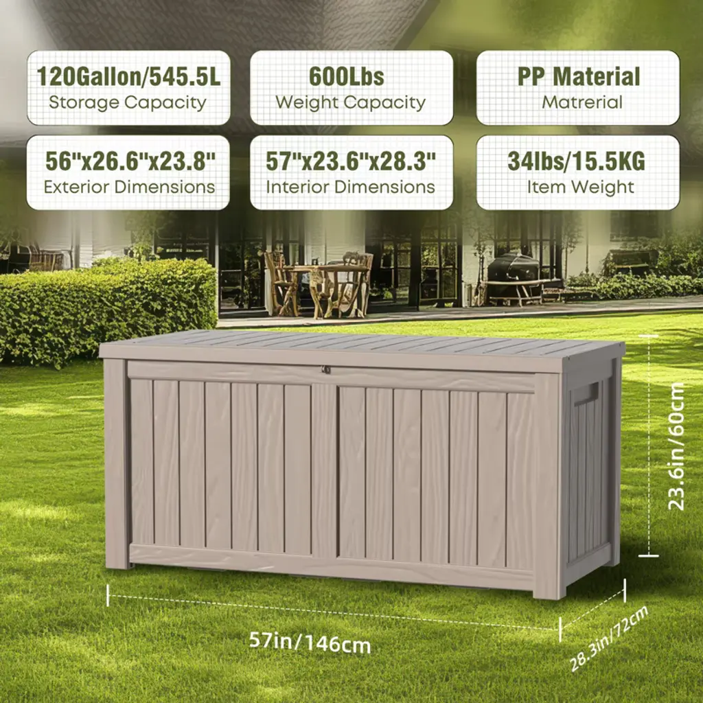Sevobal Deck Boxes 120 Gal Outdoor Storage Deck Box, Small Patio Storage Bin For Garden Tools, Beige, 54.25"*26.5"*24.2"