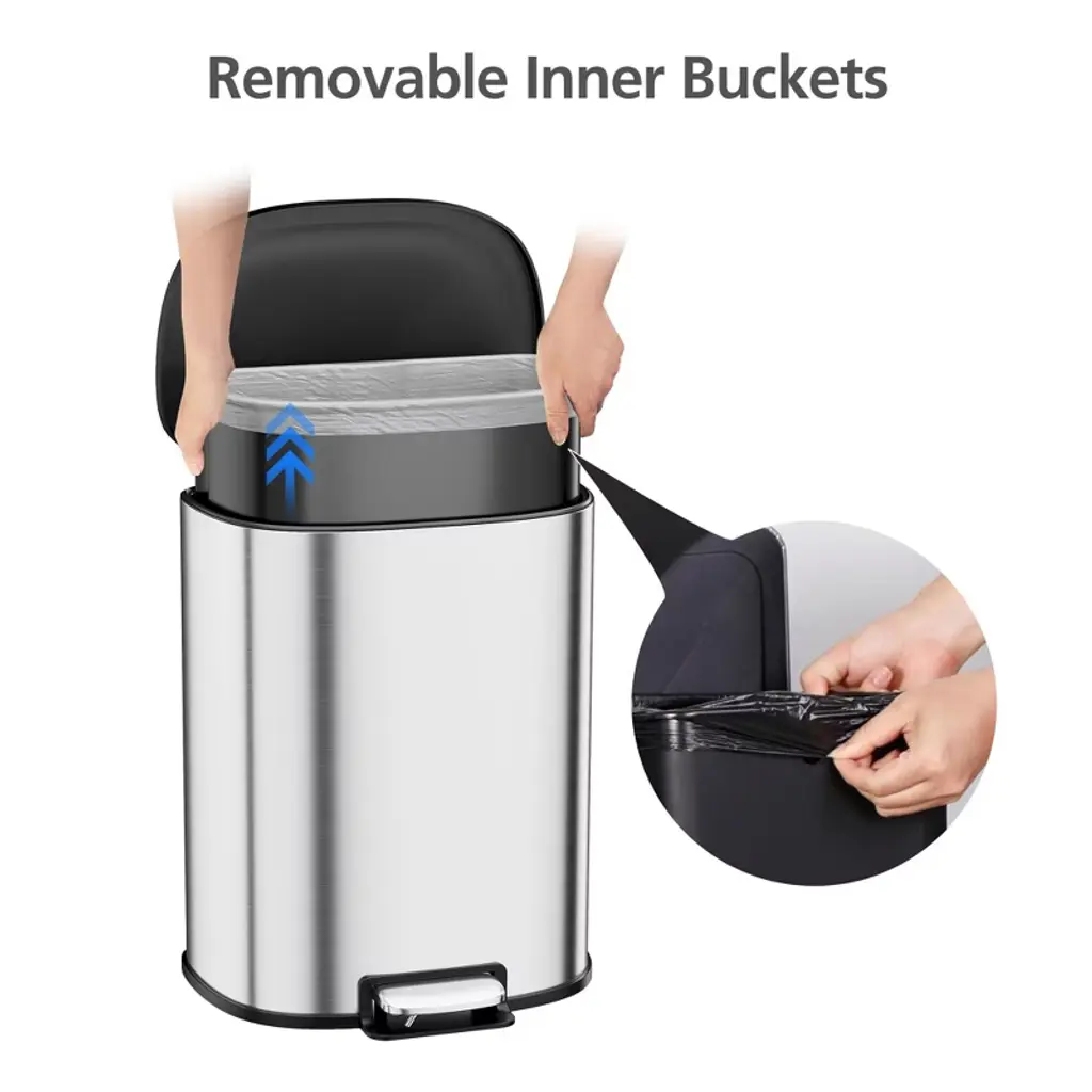 Shape Kitchen Trash Can 50l/13.2 Gal - Smudge Proof Stainless Steel Step On Garbage Bin W/removable Inner Bucket