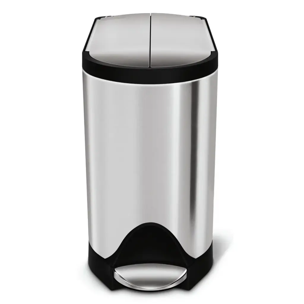 Simplehuman 10 Liter / 2.6 Gallon Butterfly Lid Bathroom Step Trash Can, Brushed Stainless Steel