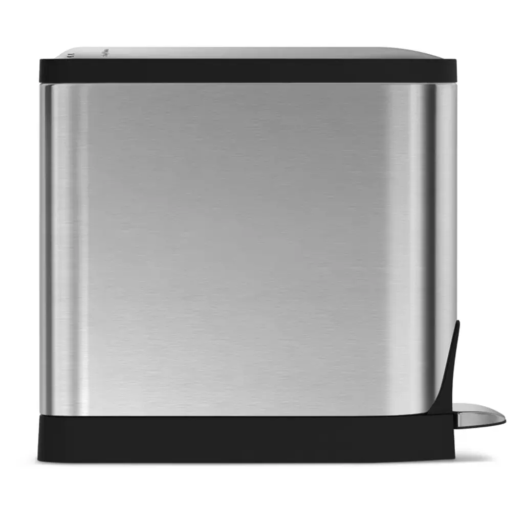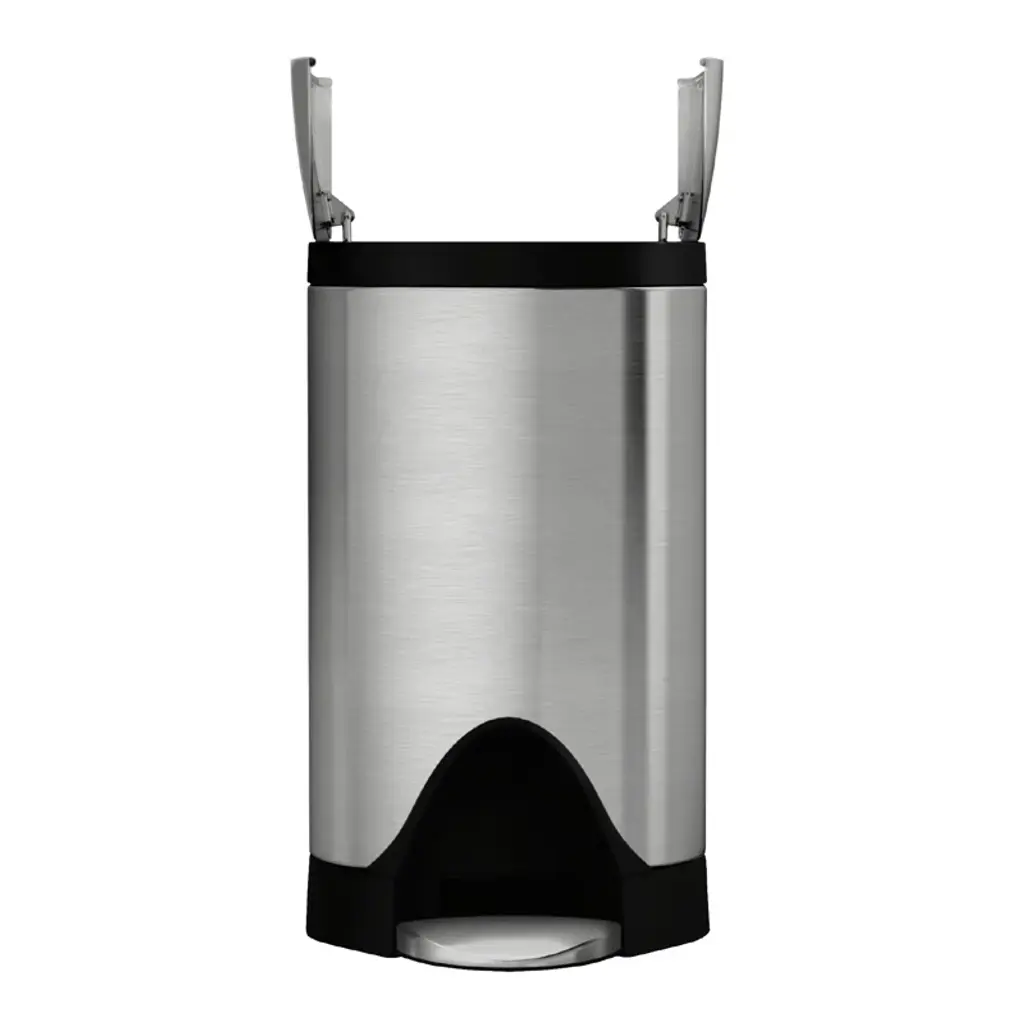 The compact size is perfect for bathrooms. The innovative butterfly lid design opens from the center for low lid clearance. A slim, space-efficient shape is ideal for tight spaces. A strong steel pedal and patented lid-shox technology ensure the can will function smoothly and quietly for years. Our code R custom fit liner fits this can perfectly — no bunching or slipping for a cleaner trash experience.