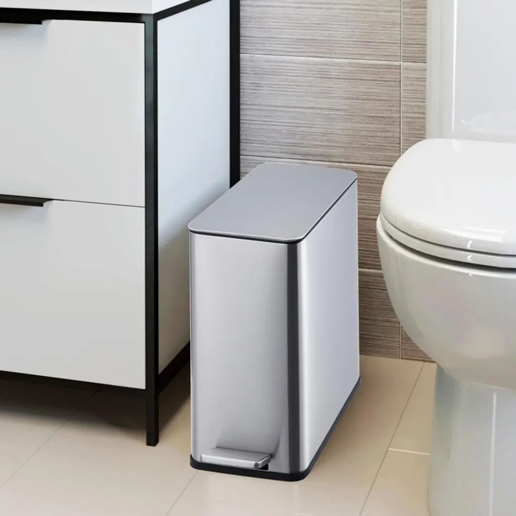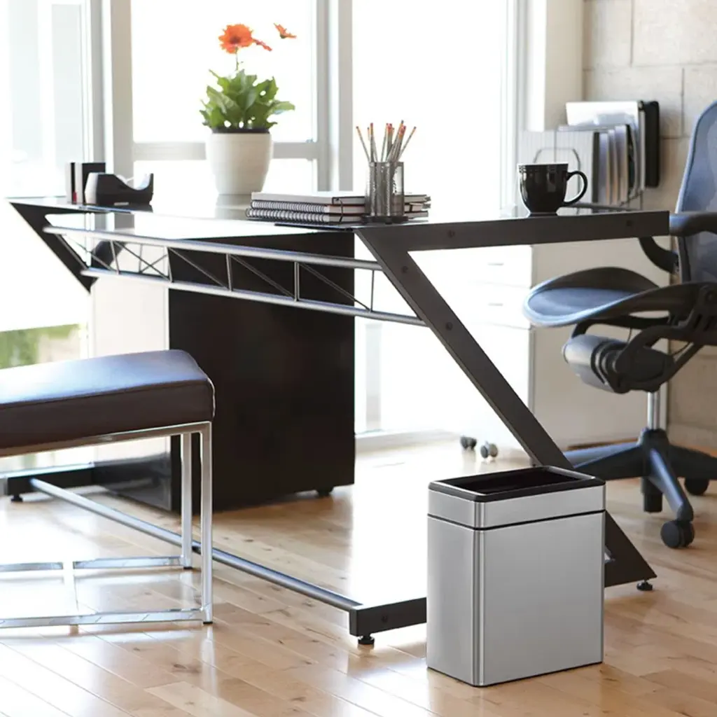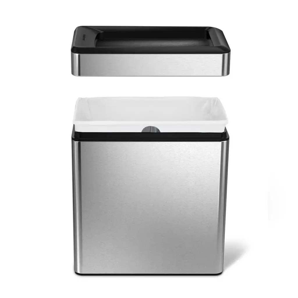 Small and chic, the compact size and slim profile shape make this simple human can a great fit in a bathroom or under a desk. A lift-off lid and removable inner bucket allow for a quick and easy bag change. The open-top cover hides messy bag overhang so the can always look neat.