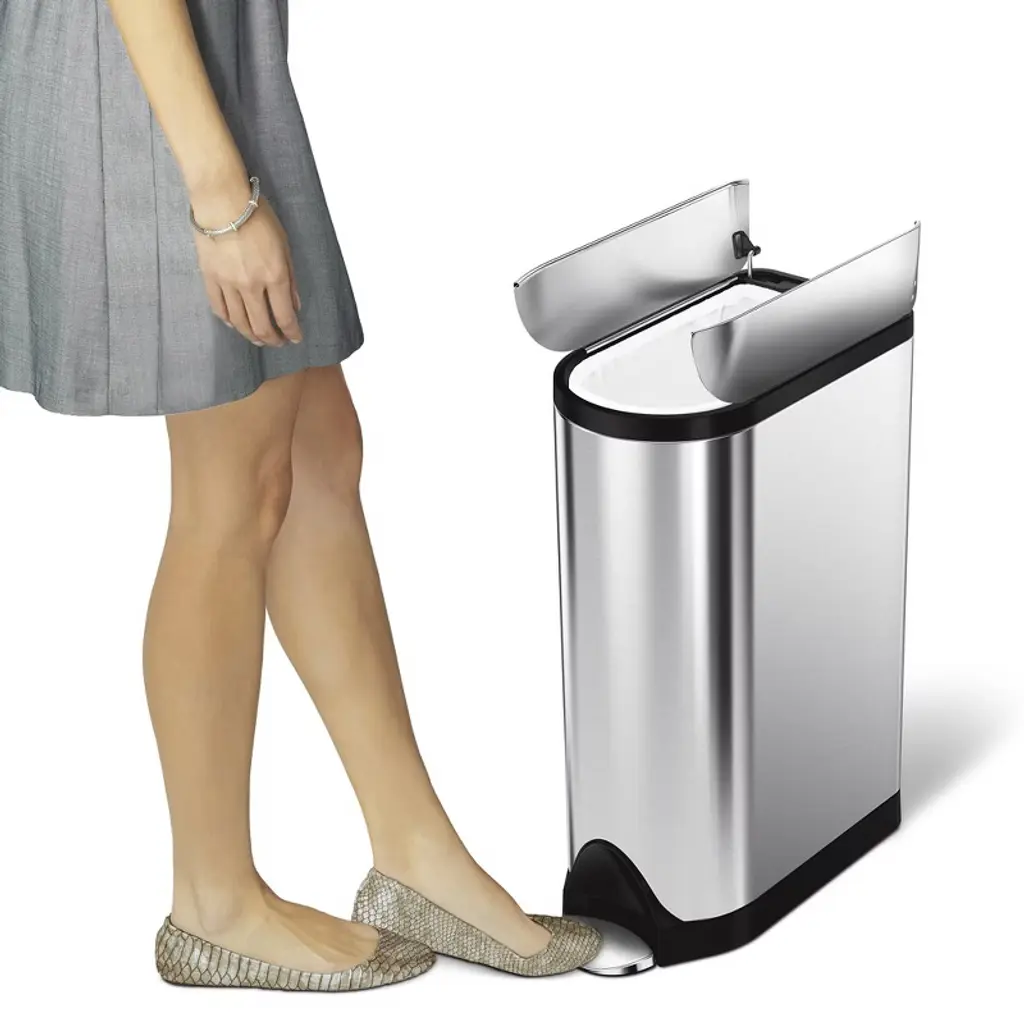 Simplehuman 18 Liter / 4.8 Gallon Butterfly Lid Kitchen Step Trash Can, Brushed Stainless Steel