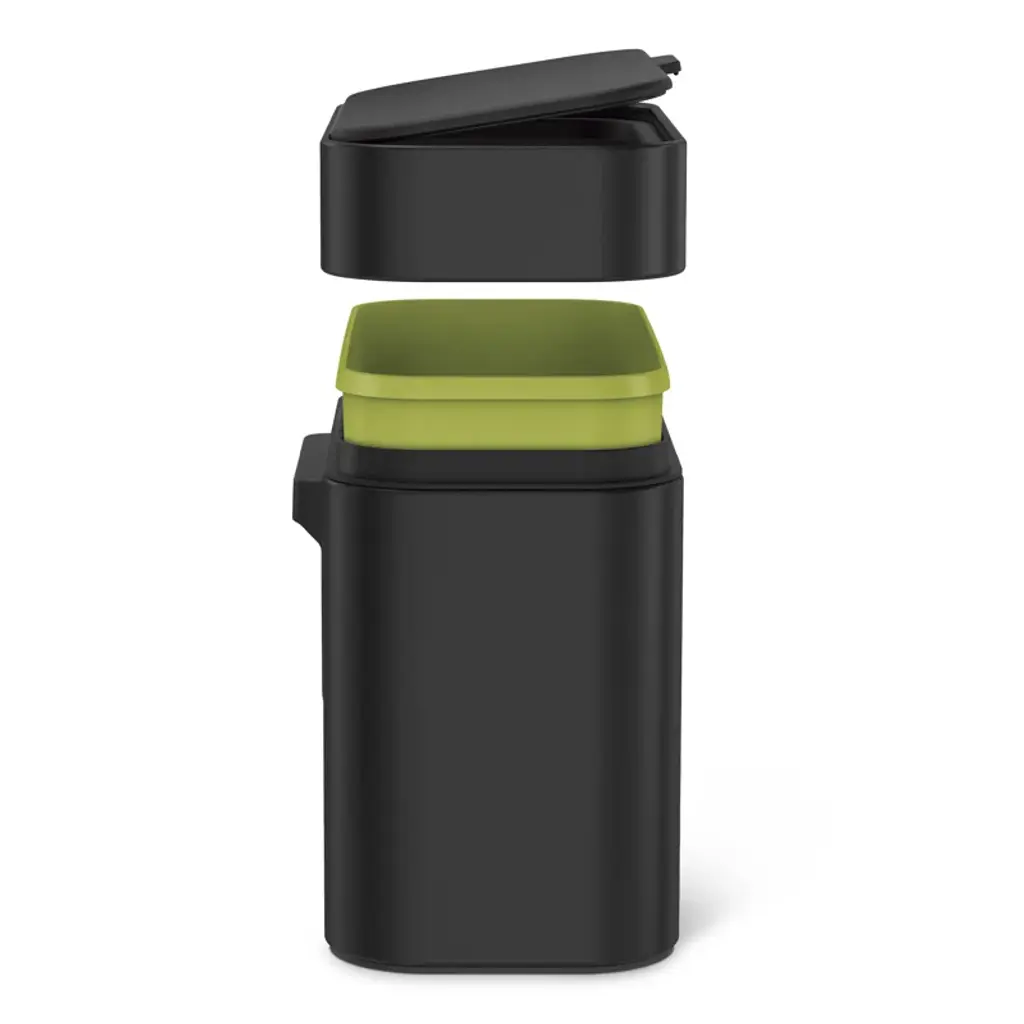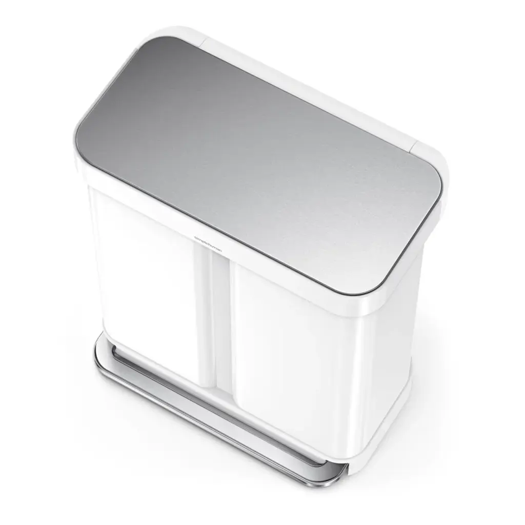Keep it clean + organized. This multi-compartment trash and recycling bin is perfect for your home. With separate compartments for trash and recycling, it helps you sort and manage your waste efficiently. Made from durable steel, it features a manual lift lid and a removable liner for easy disposal. The odor seal keeps unpleasant smells at bay, while the sleek rectangular shape fits seamlessly into any space.