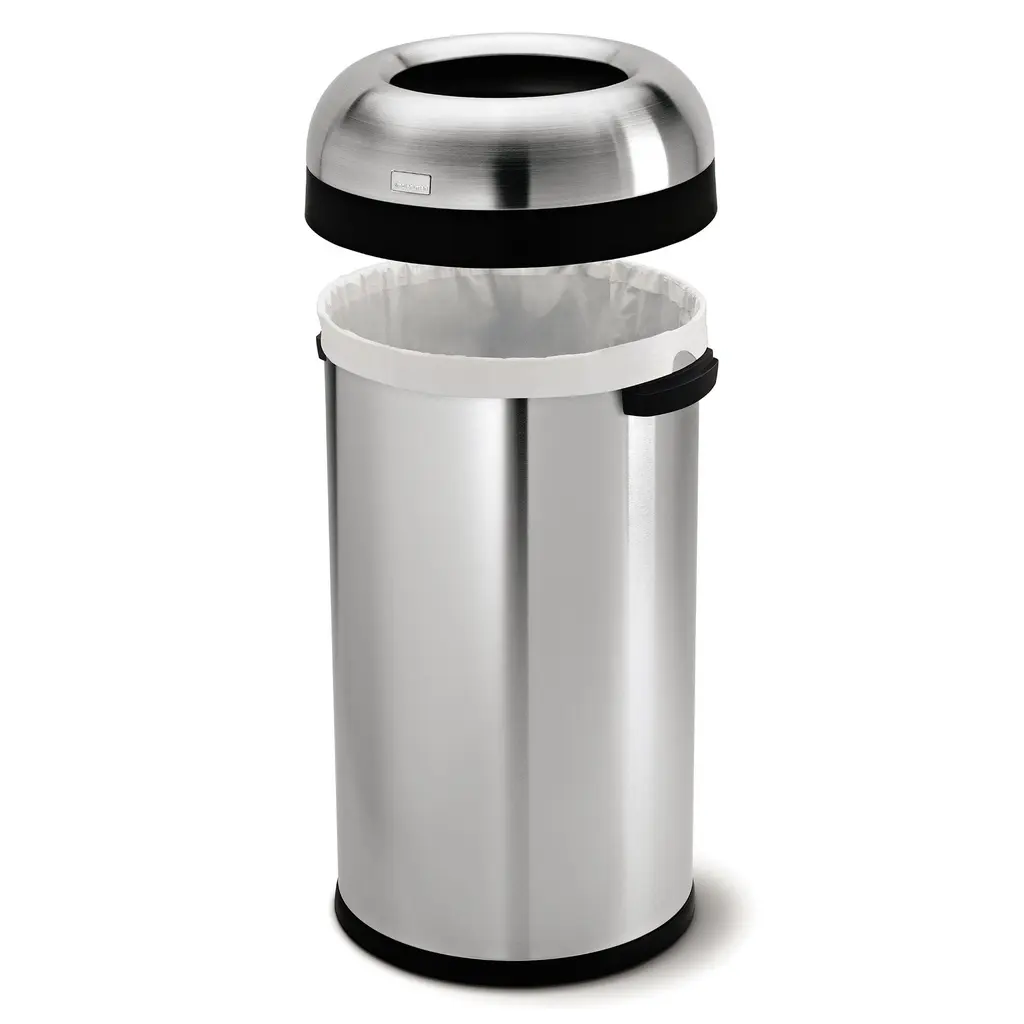 simplehuman designs innovative home essentials. Open lid design makes tossing trash easy. Ideal for commercial spaces and busy families.
