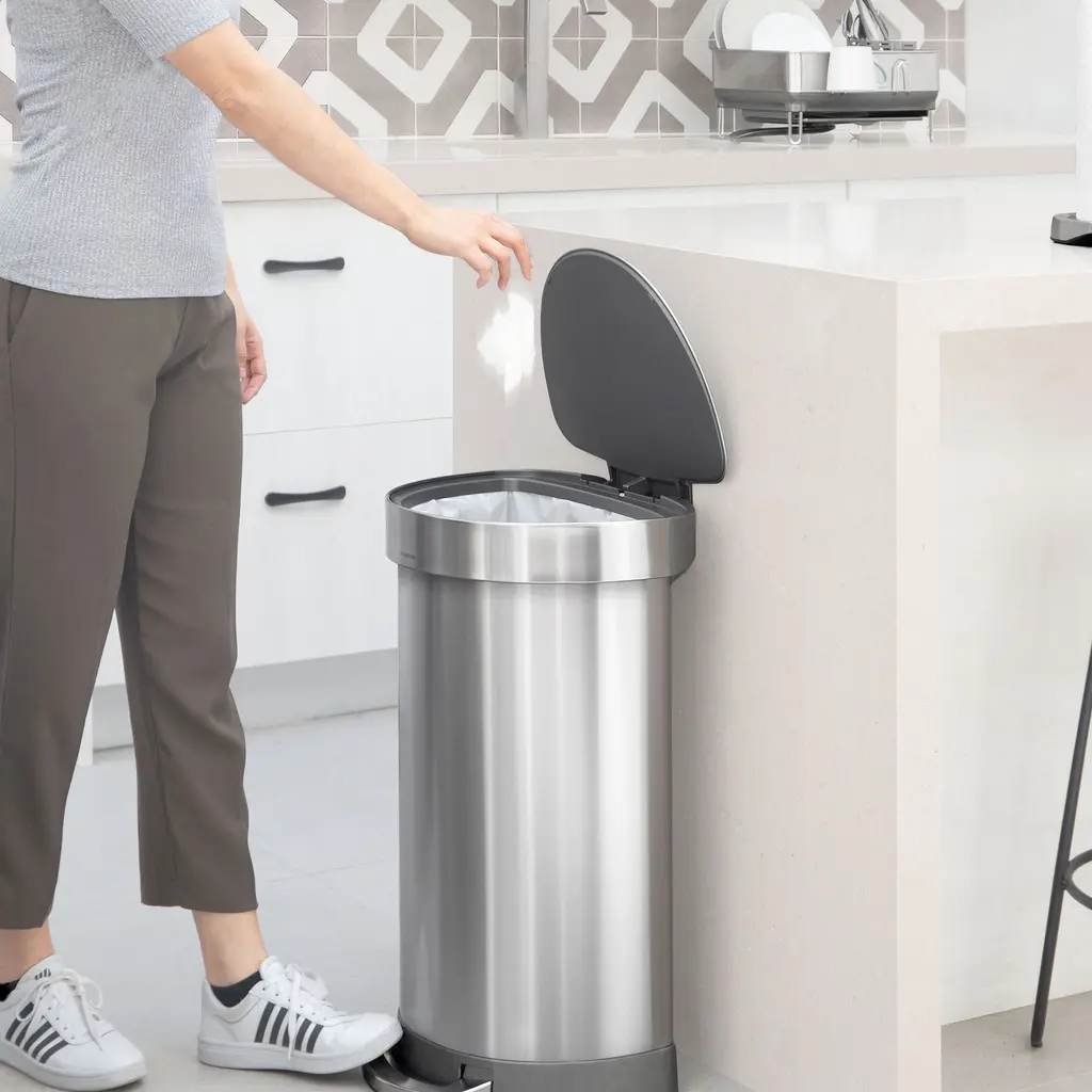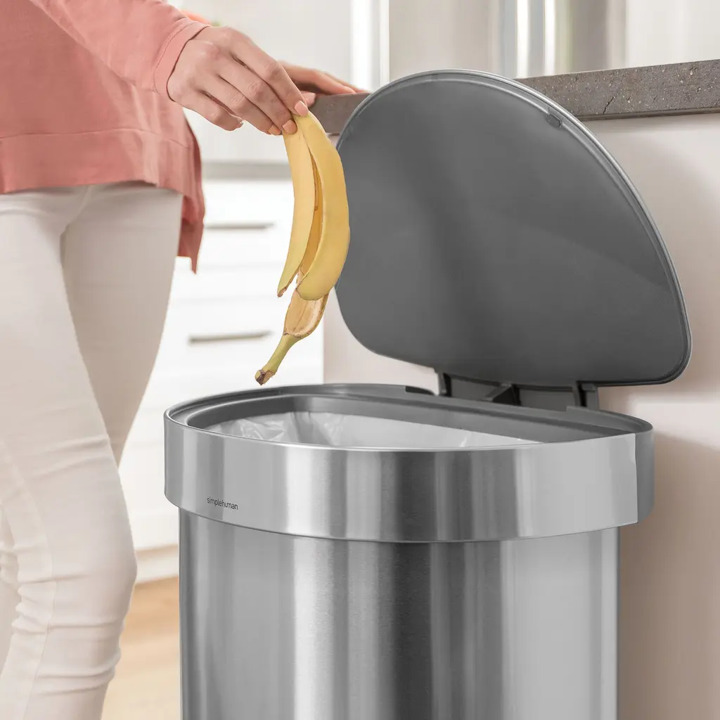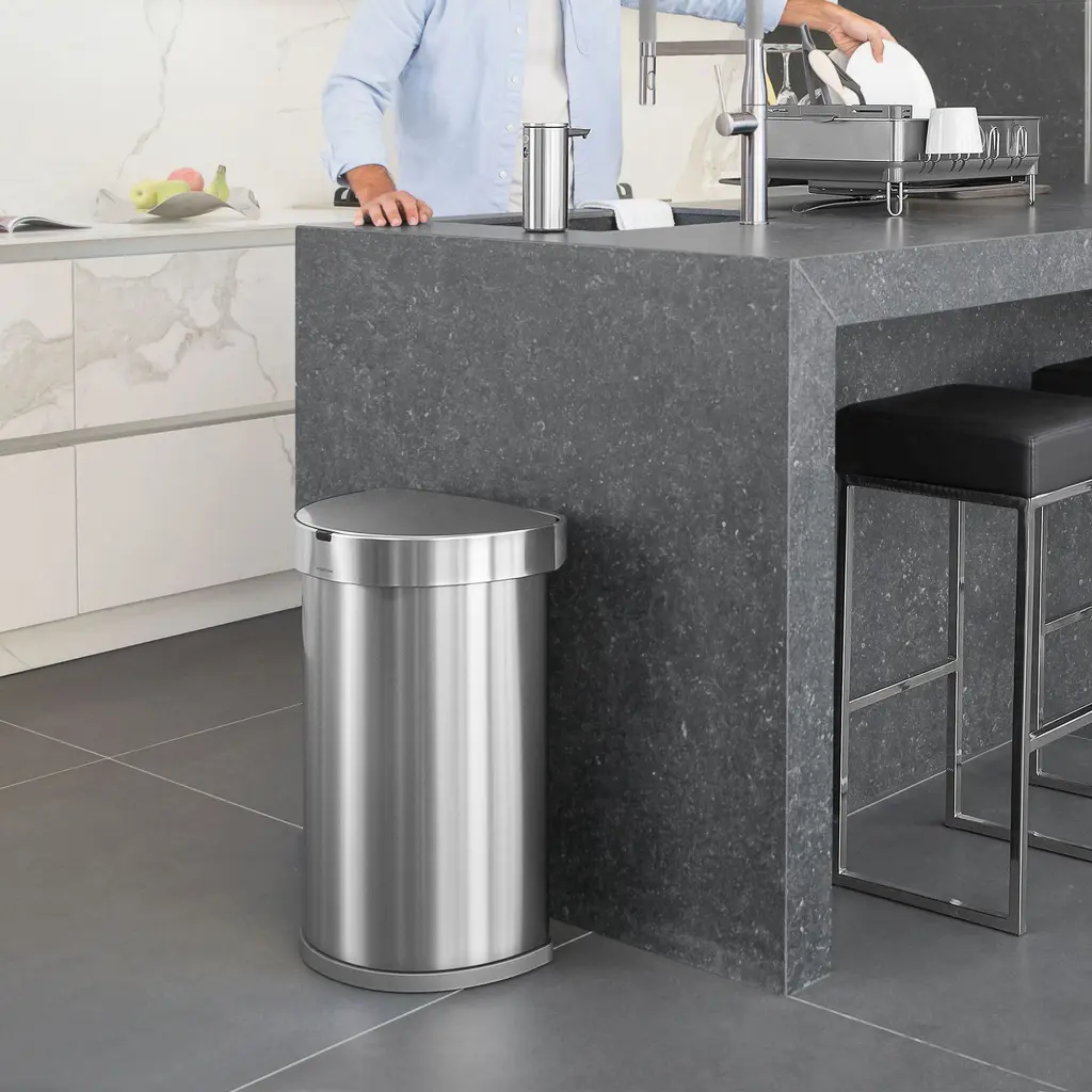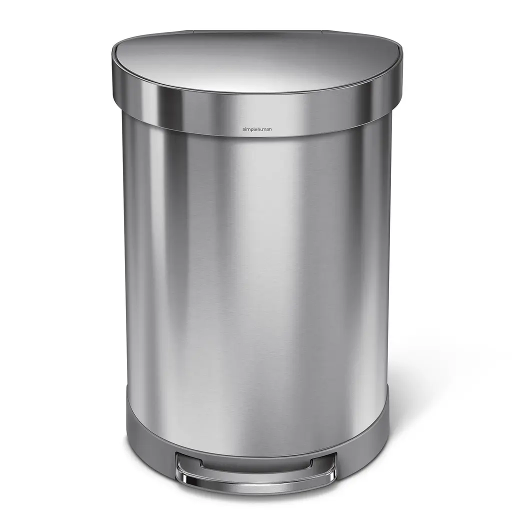 simplehuman designs innovative home essentials. Various sizes for around the house. Made from durable stainless steel. Lid opens and closes silently.