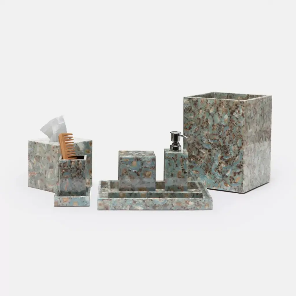 Our Sitges collection is a statement in seaside sophistication. The blues, browns, and grays of hand placed limpet shell creates an abstract pattern for bath accessories with extra-special pop. The designers at Pigeon & Poodle believe the details of a home are just as important as the furniture. A gorgeous toothbrush holder or handcrafted canister can elevate an entire bath, the perfect frame can heighten the feel of a whole space, and a good-looking storage basket can be your look’s missing link. With thoughtful design and top-notch craftsmanship, Pigeon & Poodle create home accessories with the care and attention typically reserved for larger pieces of décor.