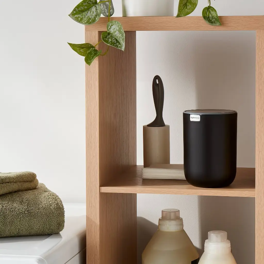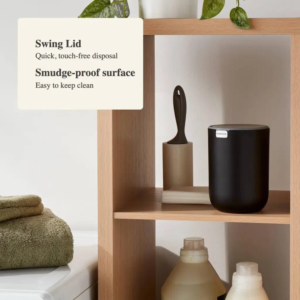 Keep your kitchen, bathroom or laundry room neat and organized with the help of this Small Stainless Desktop Wastebasket from Brightroom™. The stainless steel wastebasket features a rectangular silhouette with a plastic swing lid that allows for convenient hands-free disposal. Plus, the small wastebasket fits neatly in a cabinet or under a desk to help maintain a clean home. Showcasing a solid black hue, the bin comes with a fingerprint-resistant finish for a clean look that pairs easily with a variety of room designs and color palettes.Brightroom™: See your space in a new light.