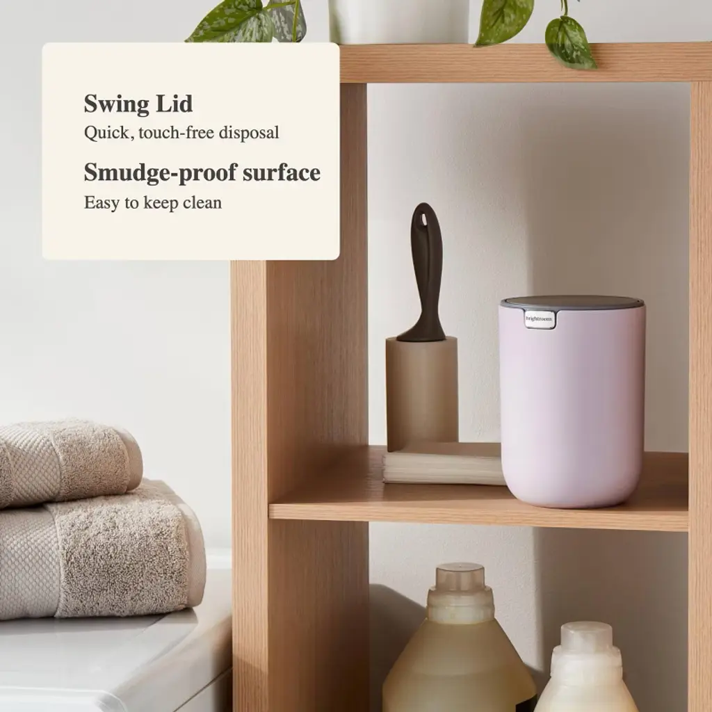 The Small Stainless Desktop Wastebasket from Brightroom™ makes a functional addition to your home. The stainless steel wastebasket features a rectangular silhouette with a plastic swing lid that allows for convenient hands-free disposal. Plus, the small wastebasket fits neatly in a cabinet or under a desk to help maintain a clean home. Designed in a solid lavender hue, the bin comes with a fingerprint-resistant finish for a clean look that pairs easily with a variety of room designs and color palettes.Brightroom™: See your space in a new light.