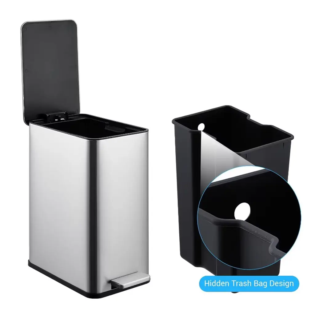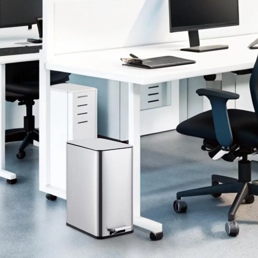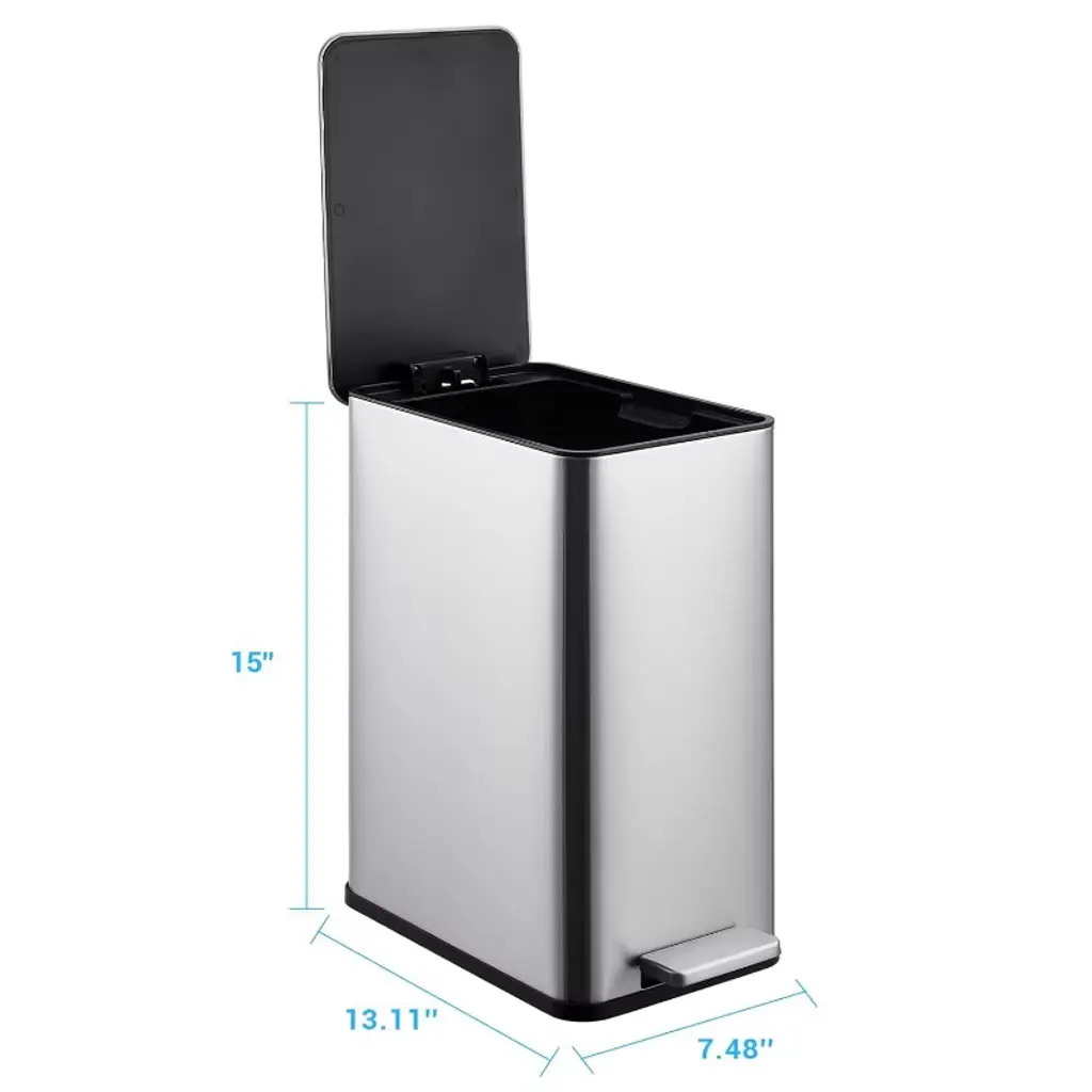 Upgrade your space with this stylish stainless steel trash can! Designed for compact areas, it features a hands-free foot pedal, soft-close lid, and removable inner bucket for easy cleaning—ideal for kitchens, bathrooms, or offices, blending functionality with modern elegance.