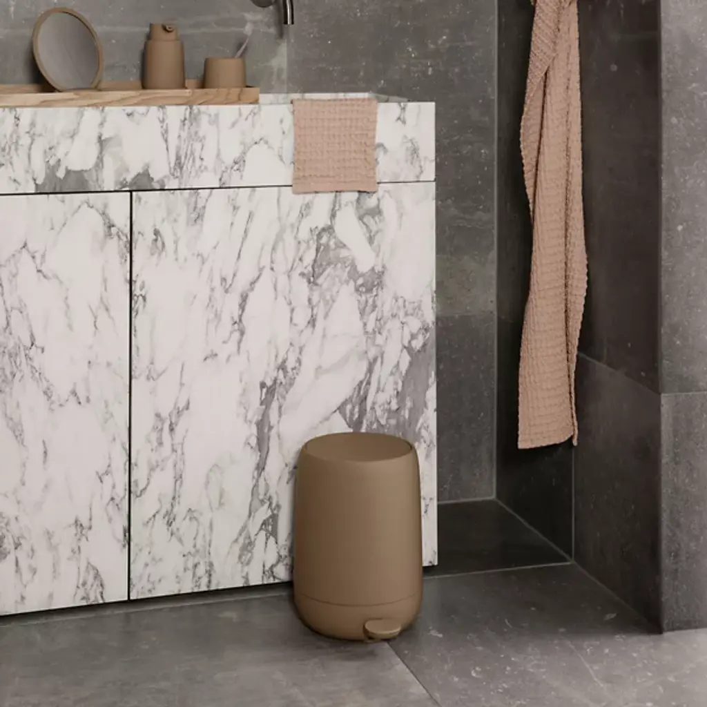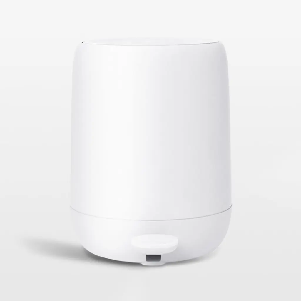 Keeping clean is a breeze with the Sono Pedal Bin Wastepaper Basket from Blomus. A cylindrical assembly of plastic and silicone, it’s rounded and soft, with a smooth lid set into the basket’s top that rises at the press of a pedal, dropping softly to cover a plastic bucket that’s removable for easy cleaning.