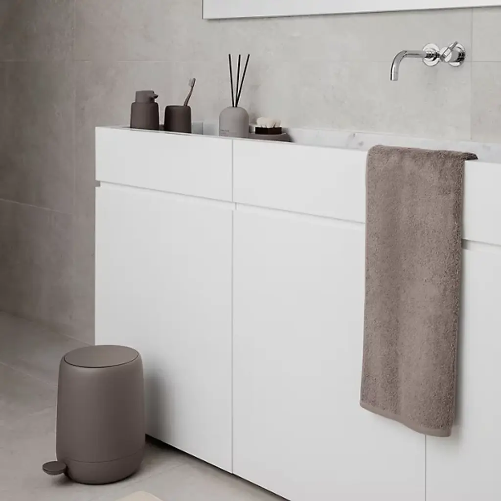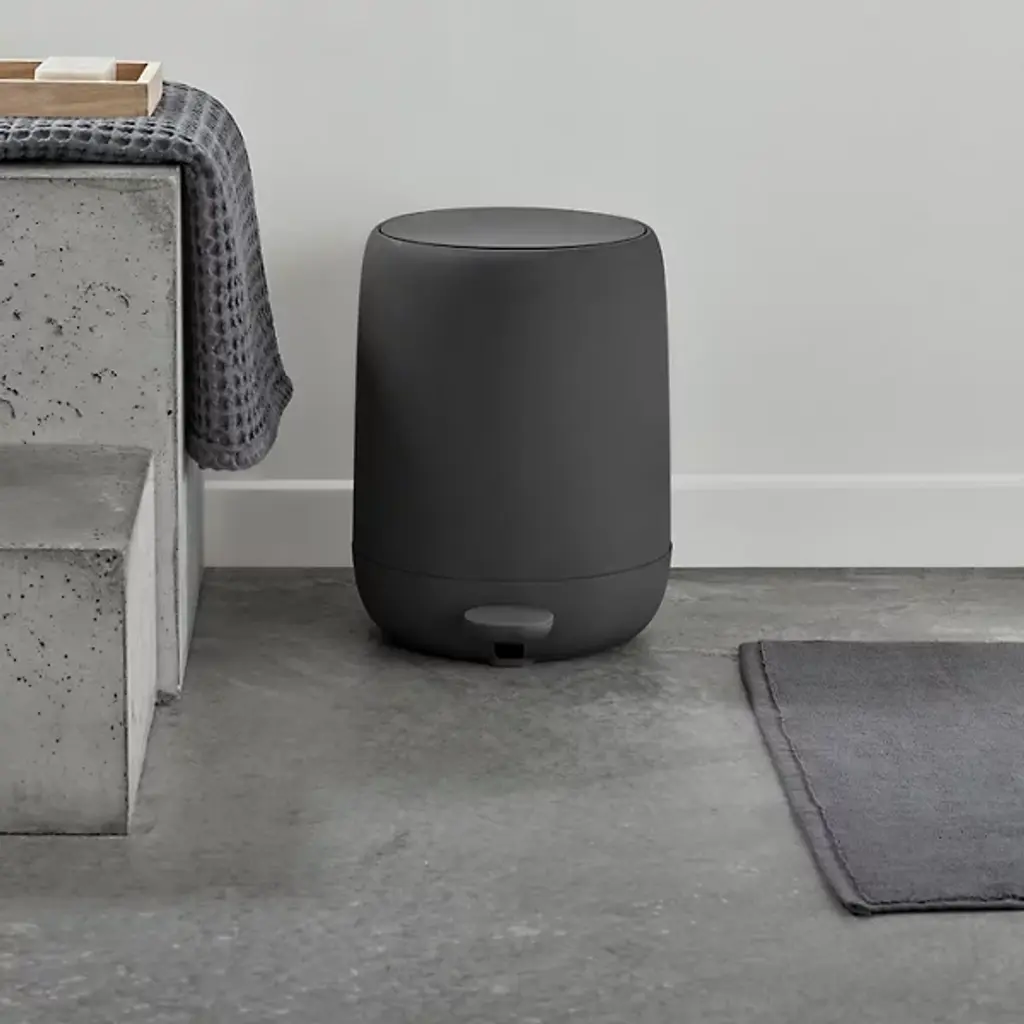 Keeping clean is a breeze with the Sono Pedal Bin Wastepaper Basket from Blomus. A cylindrical assembly of plastic and silicone, it’s rounded and soft, with a smooth lid set into the basket’s top that rises at the press of a pedal, dropping softly to cover a plastic bucket that’s removable for easy cleaning.