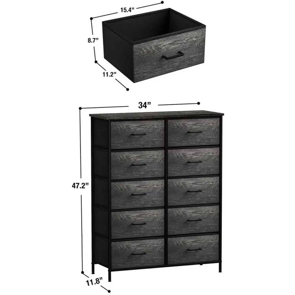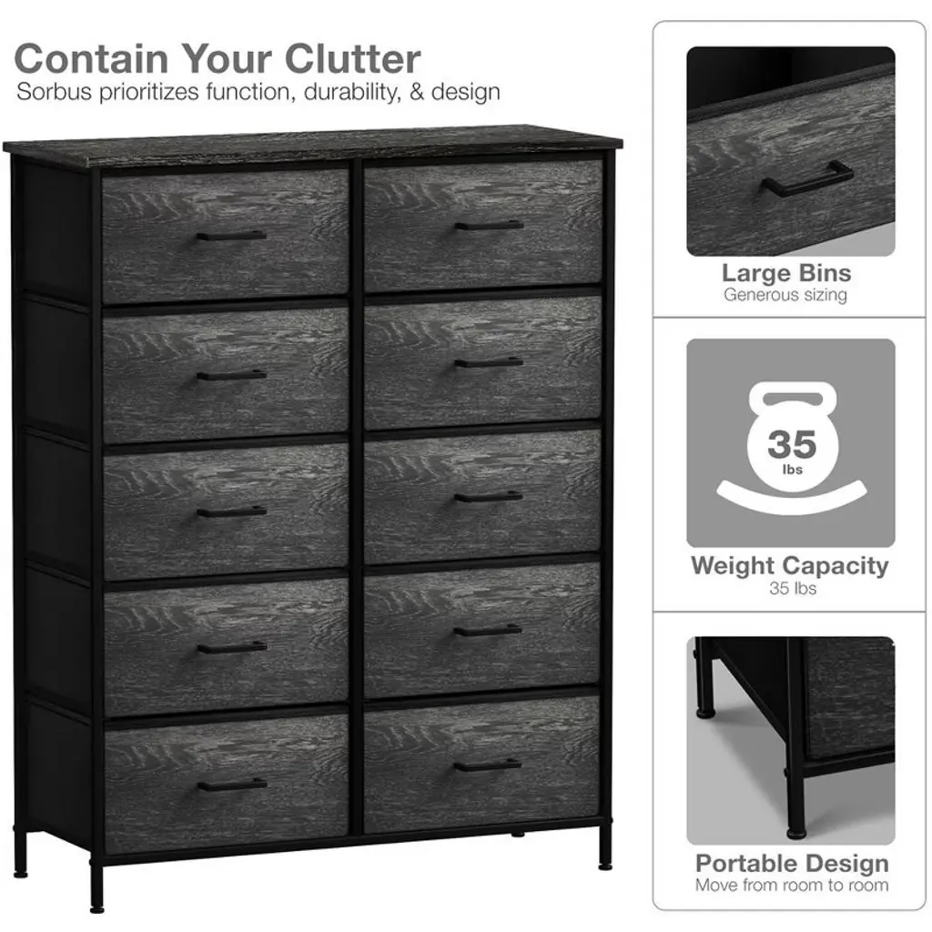 Sorbus 10 Drawers Dresser - Furniture Storage For Bedroom, Closet, Office Organization - Steel Frame, Wood Top, Fabric Bins (Rustic Black)