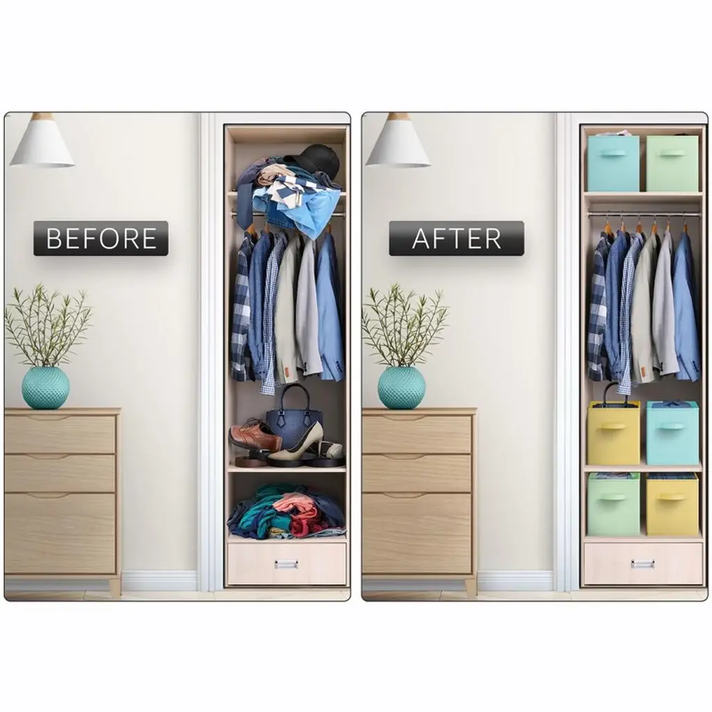 Sorbus 11 Inch 6 Pack Foldable Fabric Storage Bins With Handles - For Organizing Pantry, Closet, Playroom, And More (Pastel Blue, Green And Yellow)